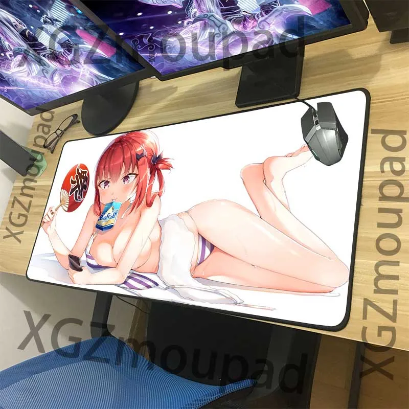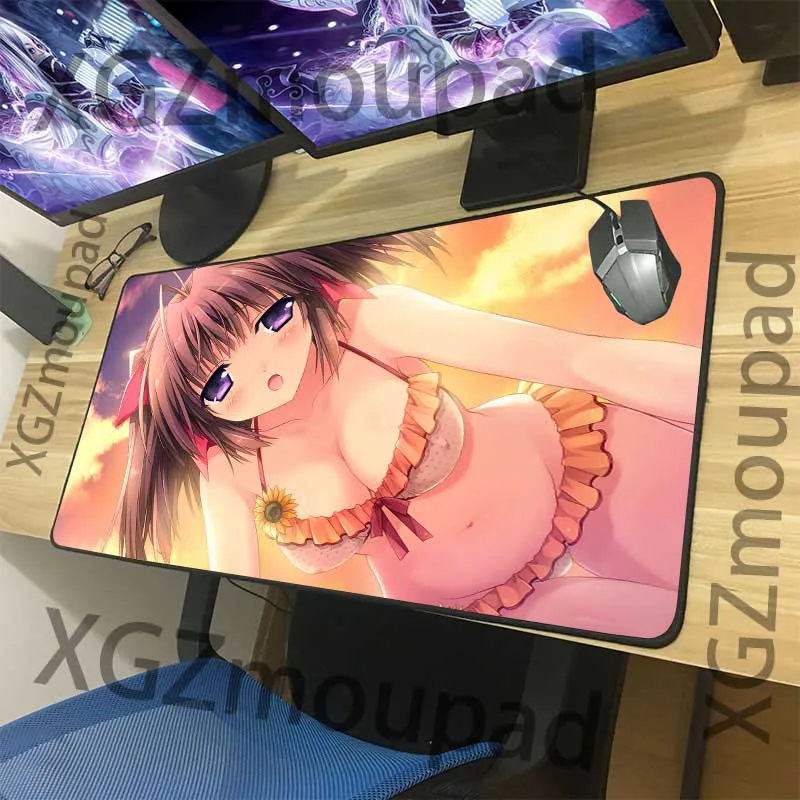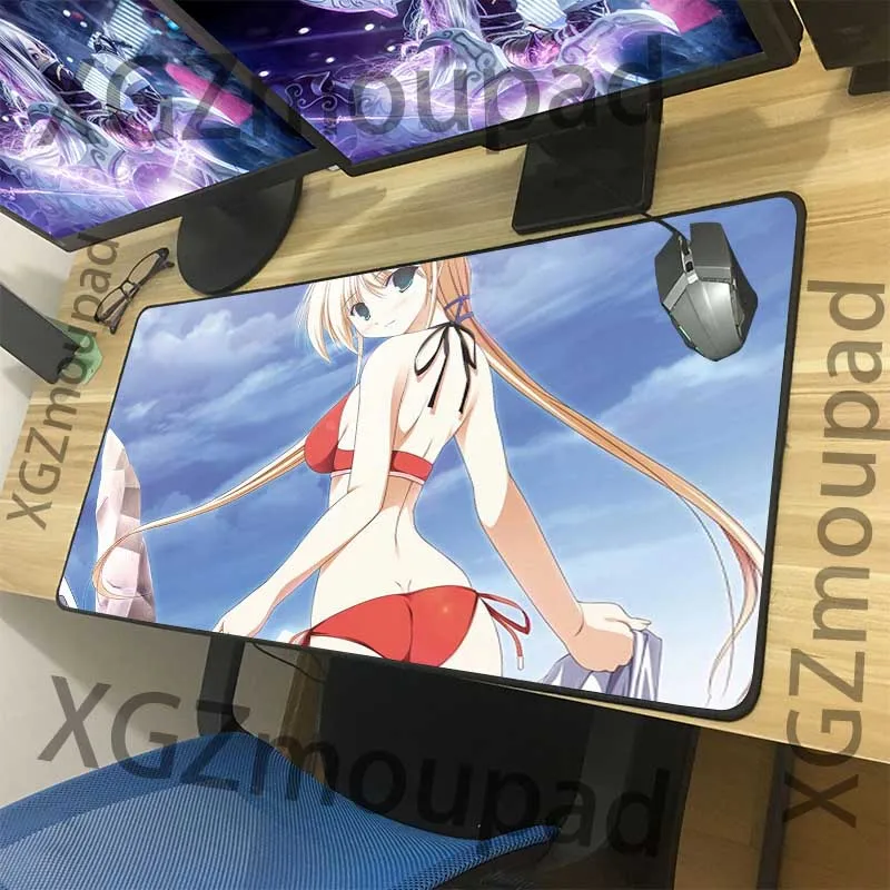 Большой привлекательный коврик для мыши XGZ в стиле аниме с бикини, изысканный черный коврик для ноутбука с блокировкой EdgePC, резиновый нескользящий персонализированный коврик под заказ