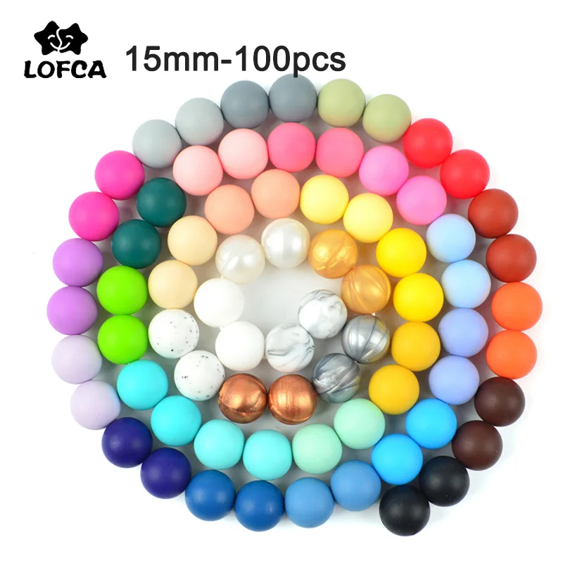 LOFCA, 15 мм, 100 шт., силиконовые бусины, круглые бусины для прорезывателя для зубов, Детские аксессуары для изготовления подвесок