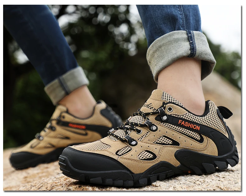 Кроссовки мужские туристические из замши и сетки, крутые дышащие, Уличная обувь для скалолазания, спортивная обувь, быстросохнущая водонепроницаемая обувь, летние