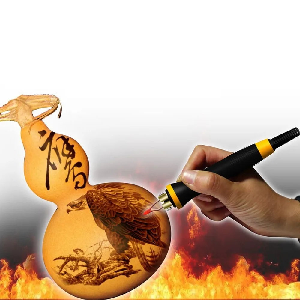 Вы можете работать на коже, дереве или с бамбуковой полоской, так как это с цифровым контролем температуры.