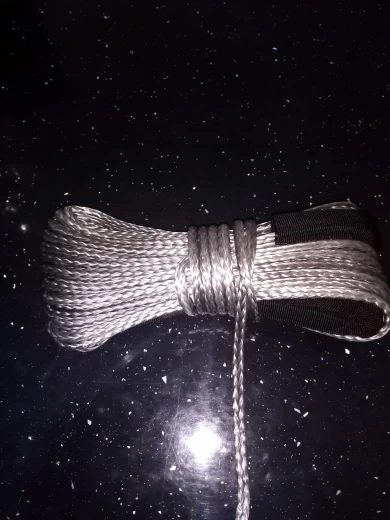 Diría que es igual a otra que he comprado de Dyneema aunque no aparece claramente su composición. El lazo con la anilla metálica donde iría el gancho del Winch solamente está dado vuelta y embutido hacia atrás por el interior de la propia cuerda, es decir, no tiene ningún tipo de nudo, de hecho, EL LAZO SE DESHACE CON LA MANO, para asegurarse es mejor hacer una gaza de navegación, es fácil y hay muchos tutoriales en YouTube, yo es lo que hecho y el resultado es muy bueno. El otro extremo de la cuerda tiene un terminal de cobre de origen eléctrico que dudo mucho de su fiabilidad, así que he hecho otra gaza, La protección de la cuerda es correcta, va sujeta con una puntada de hilo por lo que es muy fácil recolocarla. En general estoy contento con la compra