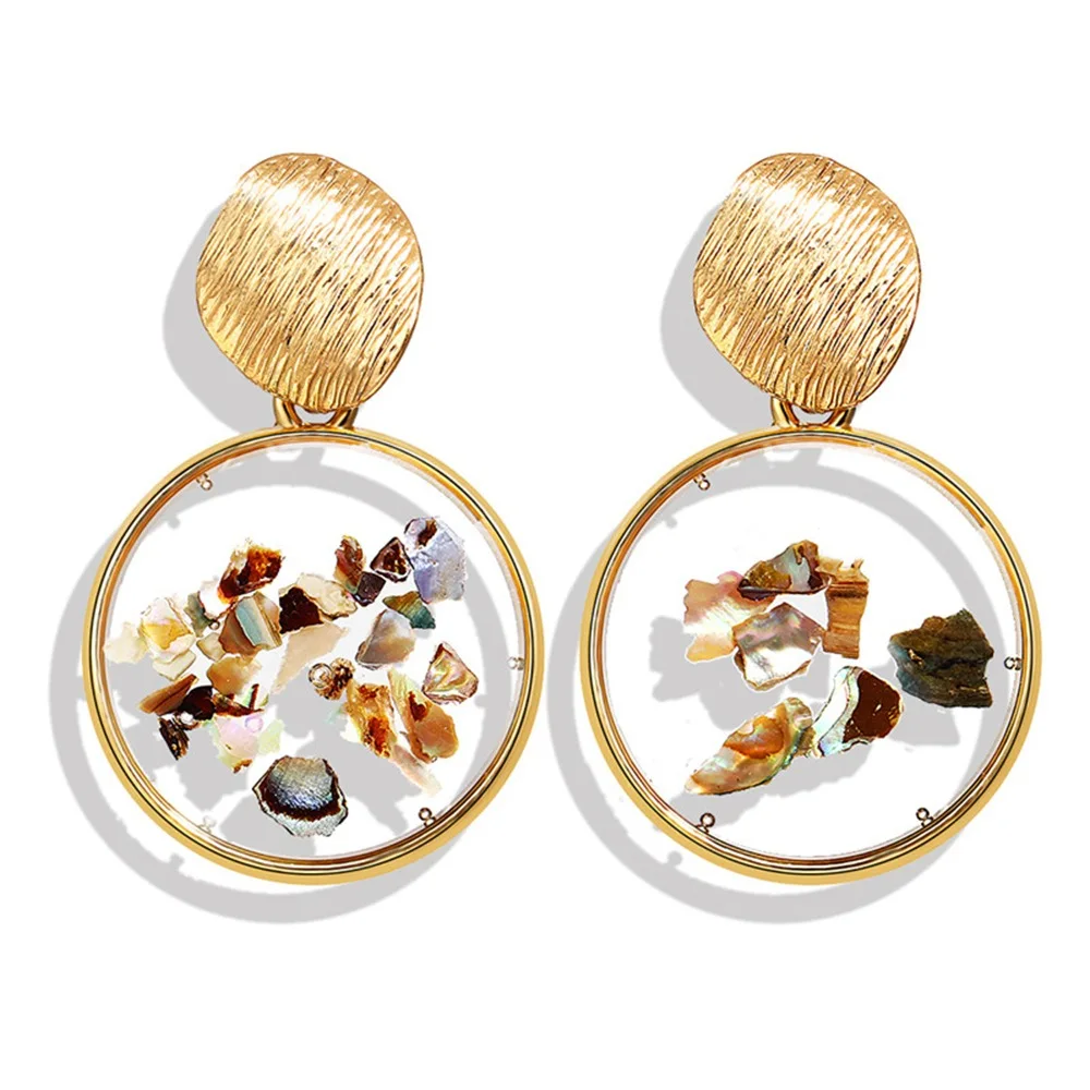 Ассиметричные золотые серьги из морских ракушек, круглые креативные винтажные геометрические Модные женские серьги, ювелирные изделия 2021