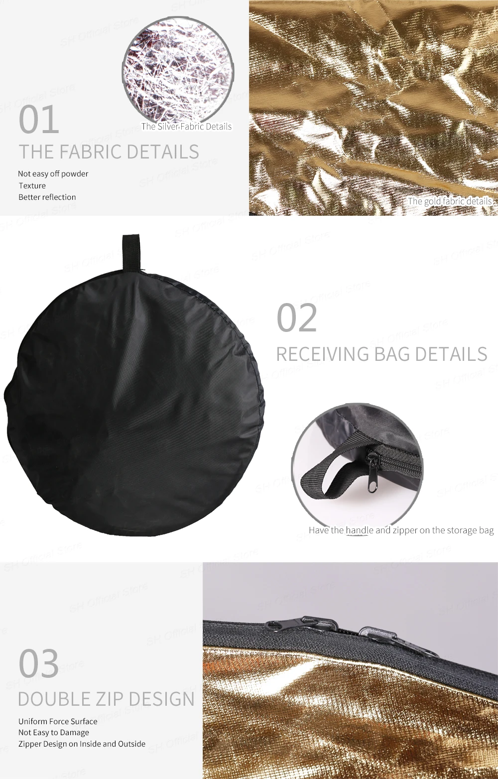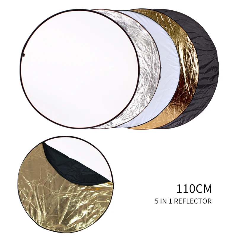 110 см фотографии светильник отражатель поставляется с пятью различными отражающими поверхностями, который удовлетворит все ваши желания в светильник ing потребности. Это черный, белый, золотой, серебряный и прозрачный.Золото: Разогрейте картинку.Серебро: Осветите изображение.Белый: отскакивает светильник в тени.Черный: блокирует нежелательный светильник.Большая универсальность, чтобы получить идеальное освещение. Свернуть до небольшого размера. Поставляется с удобным 41 см чехлом для переноски.Свернуть многодисковый светильник-отражатель в портативный размер для путешествий или хранения. Это самый популярный отражатель в фотографии, который подходит для студийной или наружной фотографии.