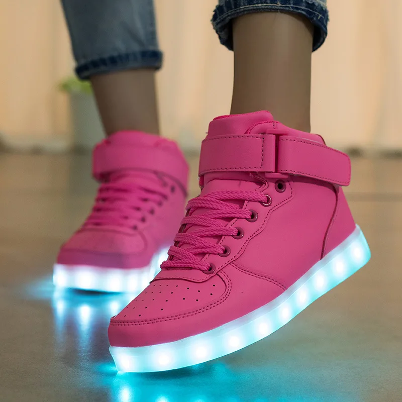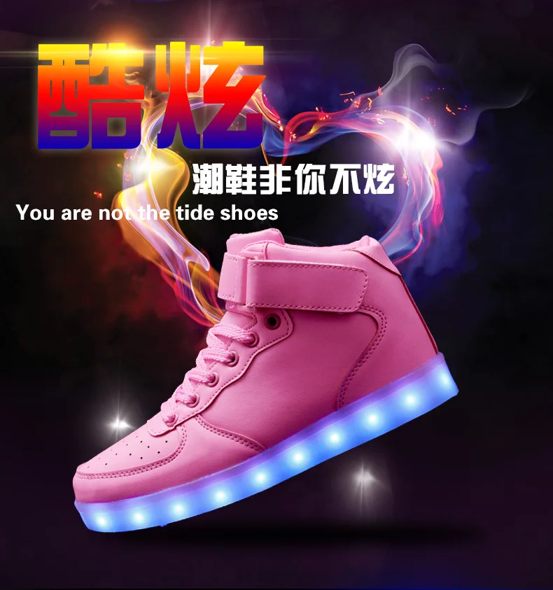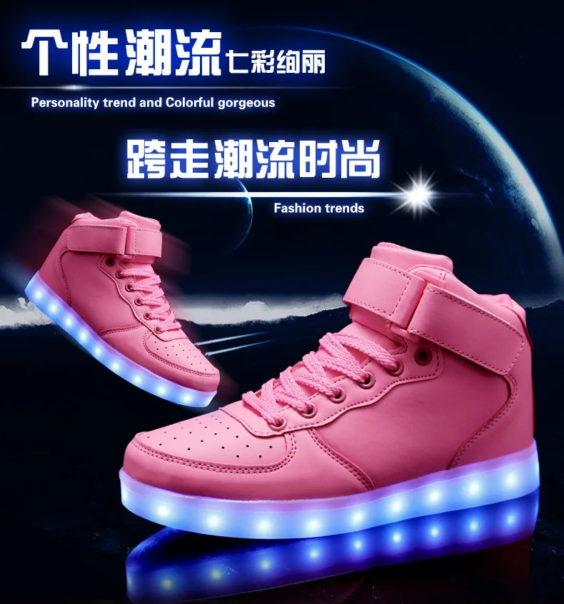 Ботинки детские, со светодиодной подсветкой, Нескользящие, белые, розовые, весна-Зима 2021