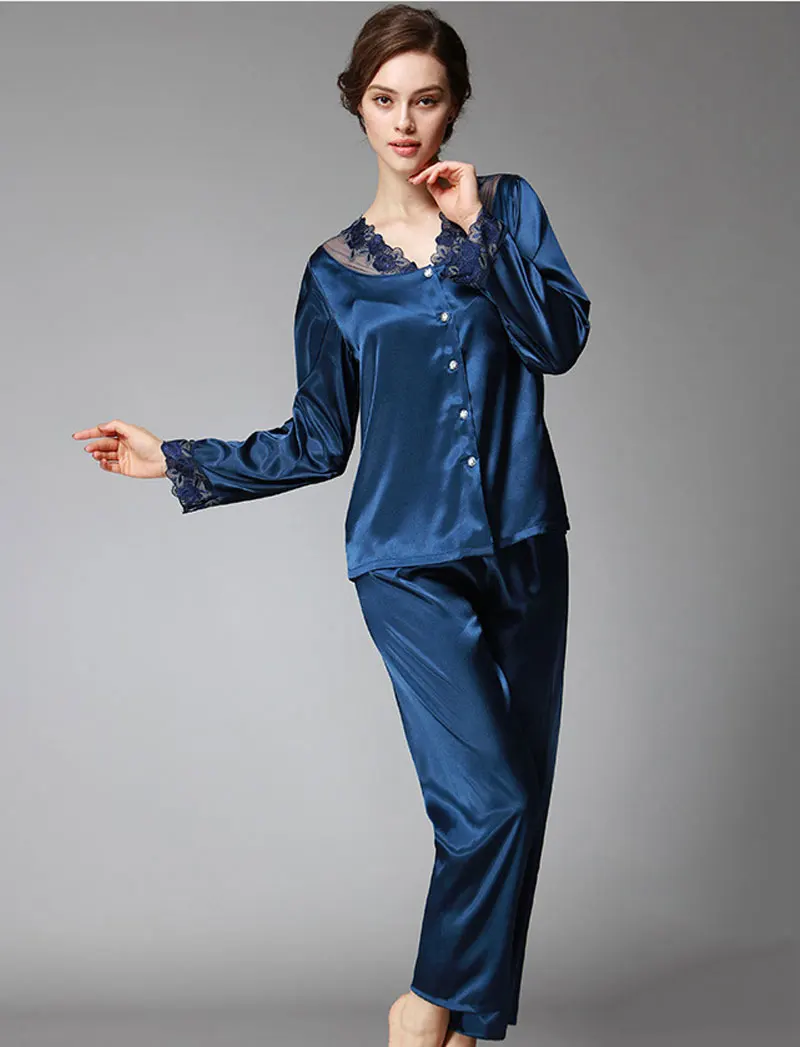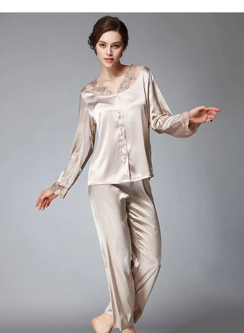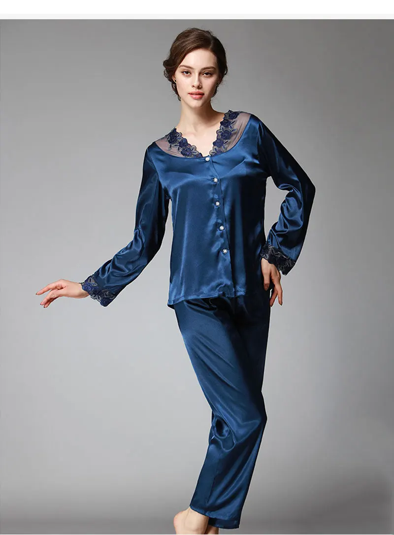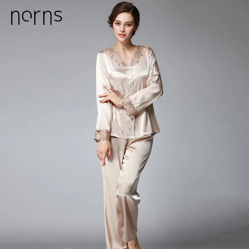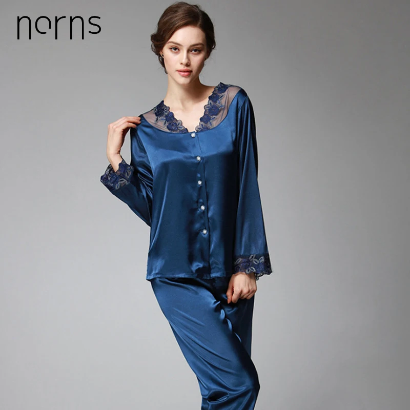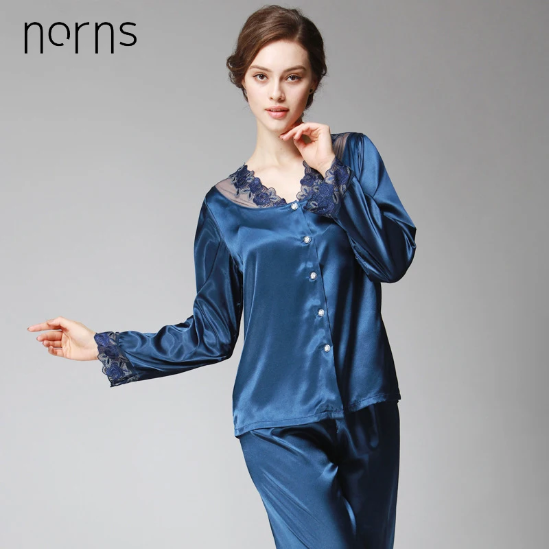 Norns пижамы добавляют удобрения для увеличения шелковых дам осенью и зимой девять точек рукав домашний сервис кружева пижамы набор