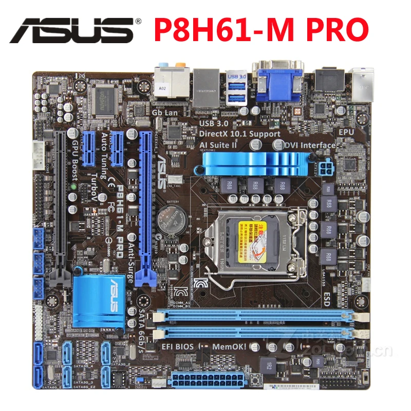 Оригинальная материнская плата ASUS P8H61-M Pro, Материнская плата ASUS P8 H61 M LGA1155 uATX DDR 3 DVI VGA USB3.0 16 ГБ, десктопная материнская плата, протестированная, бу