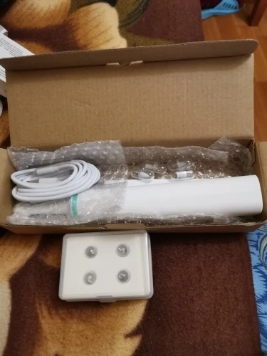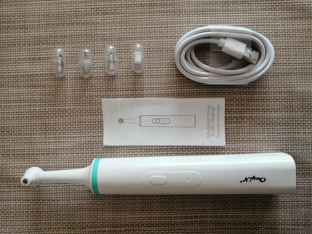 Комплектность как в описании, но сам прибор не водонепроницаемый. Насадки низкого качества, одна сломалась при первом использовании. В целом подходит для полировки после снятия зубного камня. Для ежедневного использования и профилактики лучше брать ирригатор или ультразвуковую щетку.