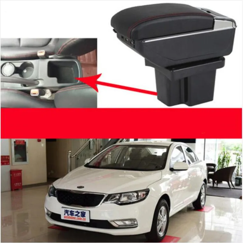 Для KIA Cerato Forte подлокотник коробка для стайлинга автомобиля из искусственной кожи центральный магазин содержимое коробки kia подлокотник коробка с подстаканником USB interfac