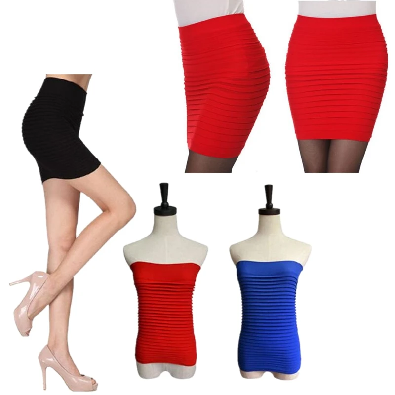 Женская юбка с высокой талией яркого цвета размера плюс, эластичная плиссированная Сексуальная короткая юбка, тонкая Однотонная юбка-карандаш для женщин
