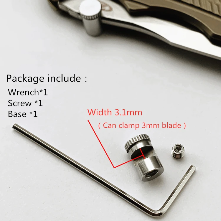 Особенность:Изготовлен из нержавеющей стали 416 CNC, с шестигранным ключом и винтами для упрощения установки.Спецификация:Материал: нержавеющая стальТехнология: CNCЦвет как показаноРазмер (прибл.): расстояние между отверстиями: 3,1 мм, может зажимать лезвие 3 мм. (Детали как показано)Посылка1 комплект шпилек для большого пальцаПримечание:1. Инструменты, продаваемые в этом магазине, все производятся на нашей собственной фабрике, а не оригинальными (подлинными) деталями.2. Возможны незначительные погрешности из-за ручного измерения.3. Пожалуйста, поймите, что цвета могут отличаться из-за различий в отображении.