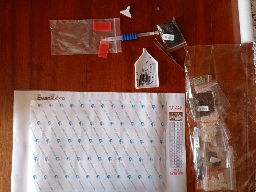 Заказ дошёл за 19 дней до МО, трек отслеживался на всём пути. Упаковка хорошая: картина намотана на валик и запаяна в целофан, почтовый пакет плотный, с пупыркой. Для работы все необходимые инструменты в наборе есть. Стразы квадратные, по количеству цветов всё совпадает - 35. Пока не будем собирать, т.к. купила на день рождения крестникам (в конце февраля), эта для девочки. Полностью соответствует описанию и фото. С продавцом не общалась-не было необходимости. Рекомендую и продавца, и товар.