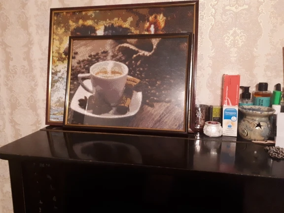 Товар ждала 2,5месяца. Картинки очень красивые, стразинок много. Размер самои картины 20×30 как и заявленно. Продавца рекомендую.