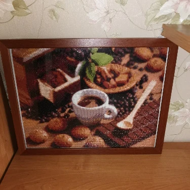 Картина пришла быстро 29 марта заказала, 14 апреля забрала. Аккуратно упакована, качественный холст, четкая распечатка. Все стразы в зип пакетах, за что огромное спасибо продавцу. Стразы яркие. В картине 35 цветов. Реальный размер картины 29 на 39 см. Я очень довольна. Спасибо продавцу!!! Как сделаю, обязательно выложу готовую картину (но это будет не скоро, т.к. есть еще недоделанные работы.