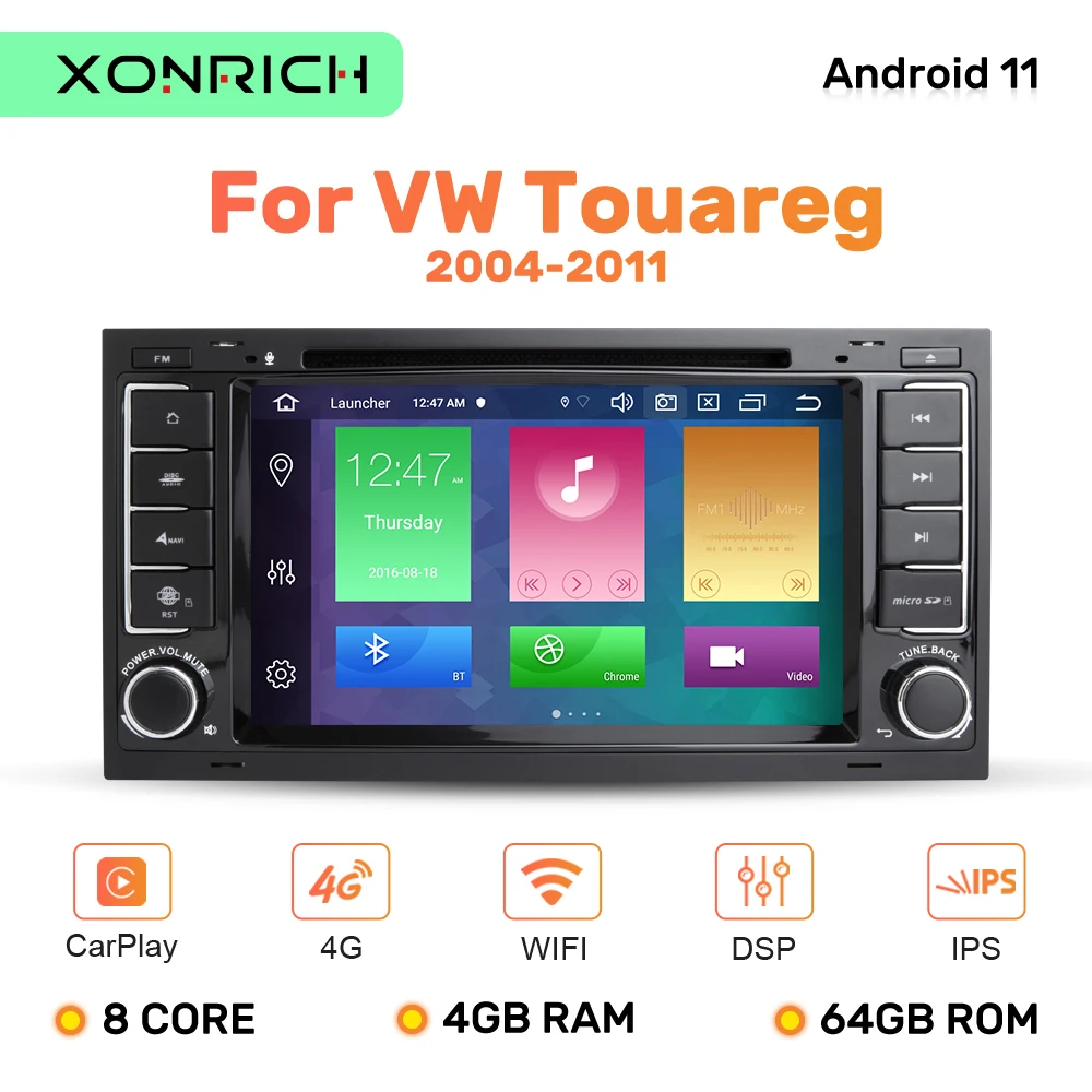 Автомобильный DVD-плеер IPS DSP 4 Гб 64 Гб 2 Din Android 11 для VWVolkswagenTouaregTransporter T5 2004-2011 мультимедийный GPS Радио 8 ядер