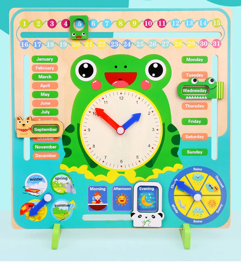 Детская деревянная лягушка, многофункциональные часы с календарем д...