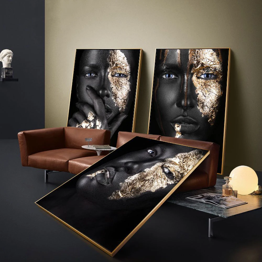 Постер черного и золотого цвета для женщин, Картина на холсте с красивым лицом, Настенная картина для гостиной, домашний декор, без рамки
