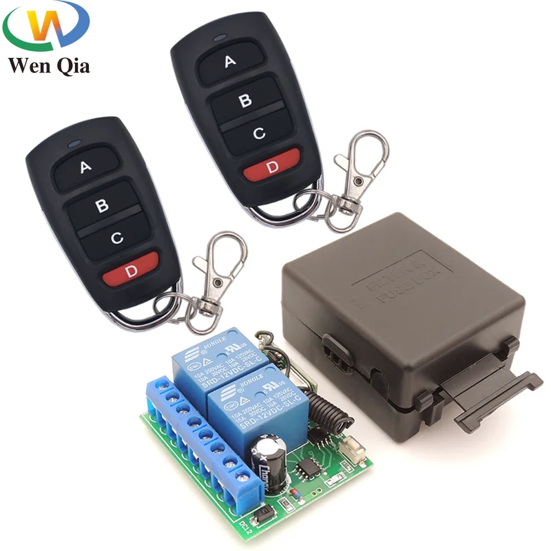 Беспроводной универсальный пульт дистанционного управления, 433 МГц, 12 В постоянного тока, 10 А, 2 канала, радиочастотный релейный приемник и передатчик для дорожной дверипереключателя двигателя