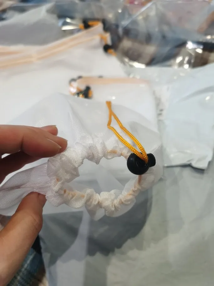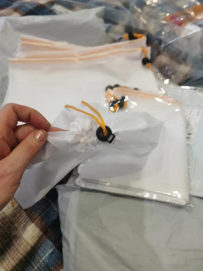 К моей радости объеденили с другим заказом и пришло быстро. Мне удобно в таких мешках держать овощи-фрукты в холодильнике. Попросила продавца положить мешочки с разными цветами шнуров. Продавец согласился, но... уже на следующий день после того, как отправил заказ.