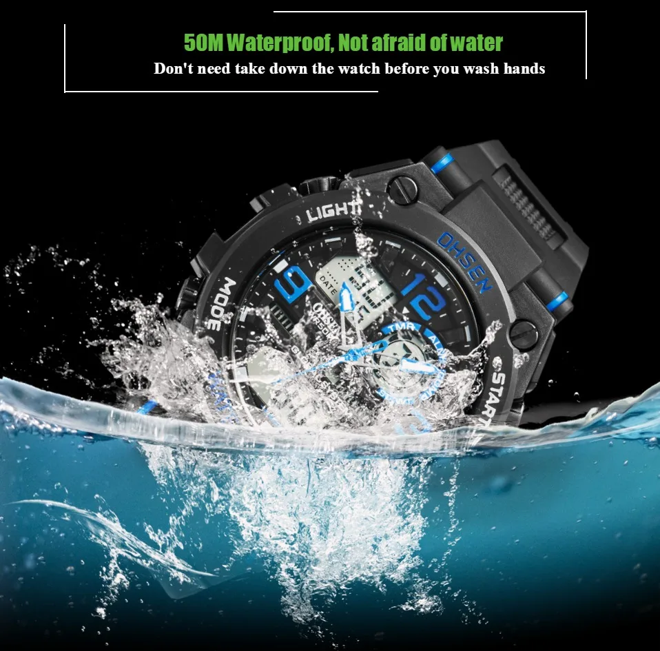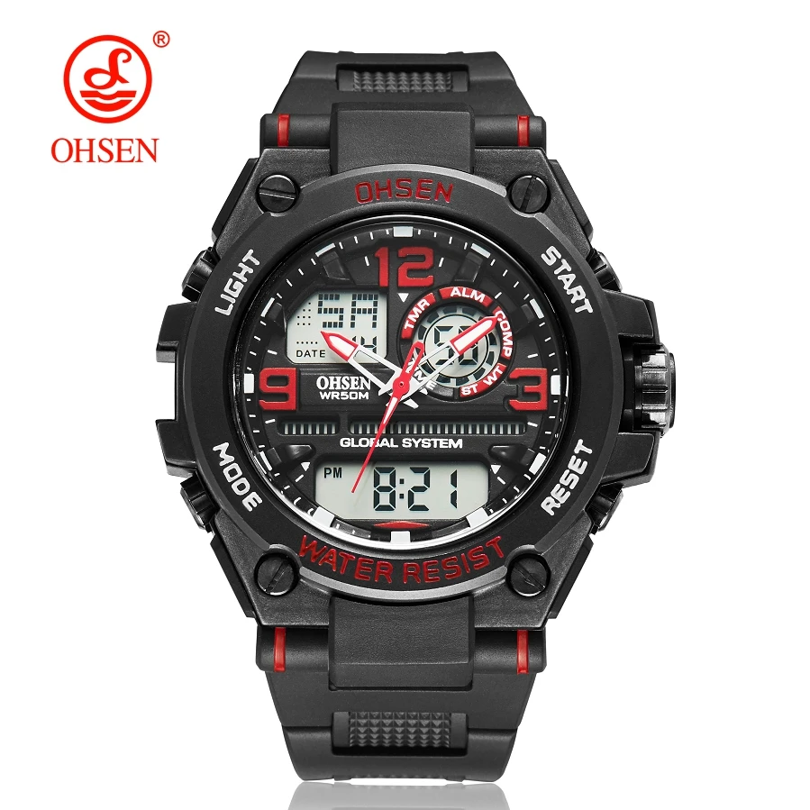 OHSEN Модные кварцевые цифровые часы, мужские светодиодные аналоговые армейские наручные часы, камуфляжные красные резиновые часы для плавания, спортивные часы Relogios