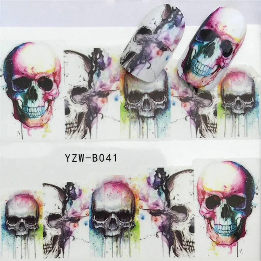 Наклейки на ногти, Водные Наклейки На Хэллоуин, тату-слайдер, череп...