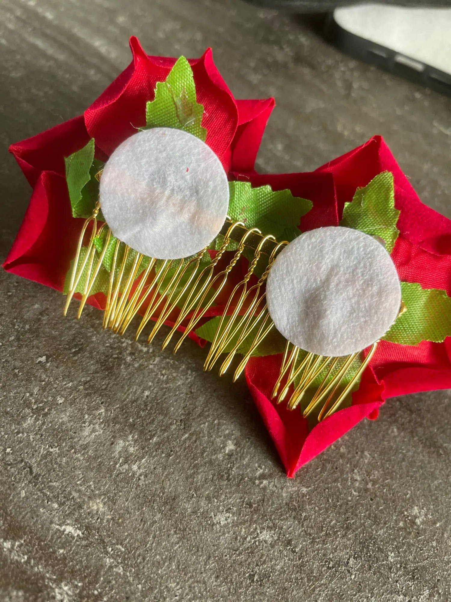 Цветы Красивые и расческа хорошего качества, но темно-фиолетовые переводят краску на все. Они окрашивают мои руки, когда я их трогаю, и я не хочу класть их в волосы, боясь, что краска попадет на мои волосы и одежду. Очень разочарован.