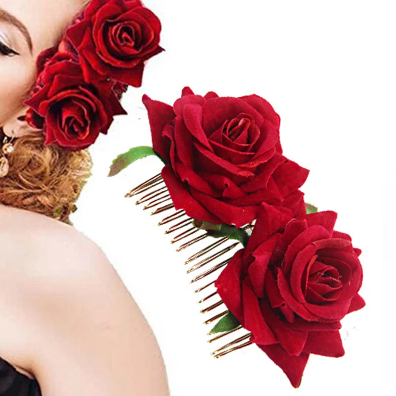 Модные ювелирные изделия, женский головной убор, очаровательные аксессуары для волос, заколки для волос, заколки с белымикрасными цветами розы, гребни для волос для свадьбы и невесты