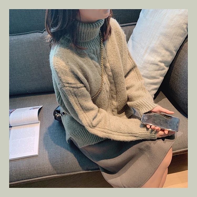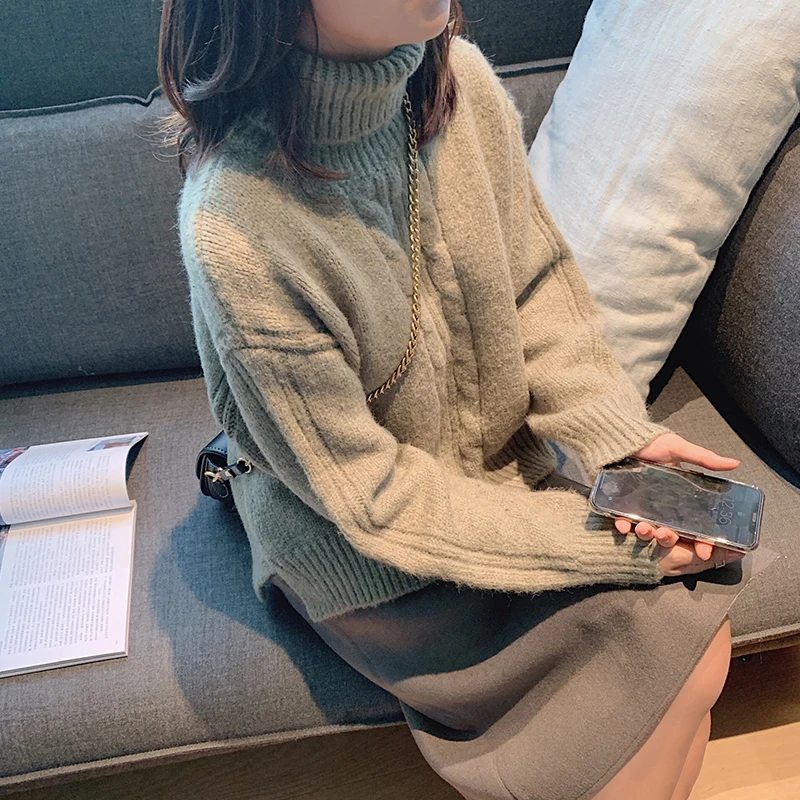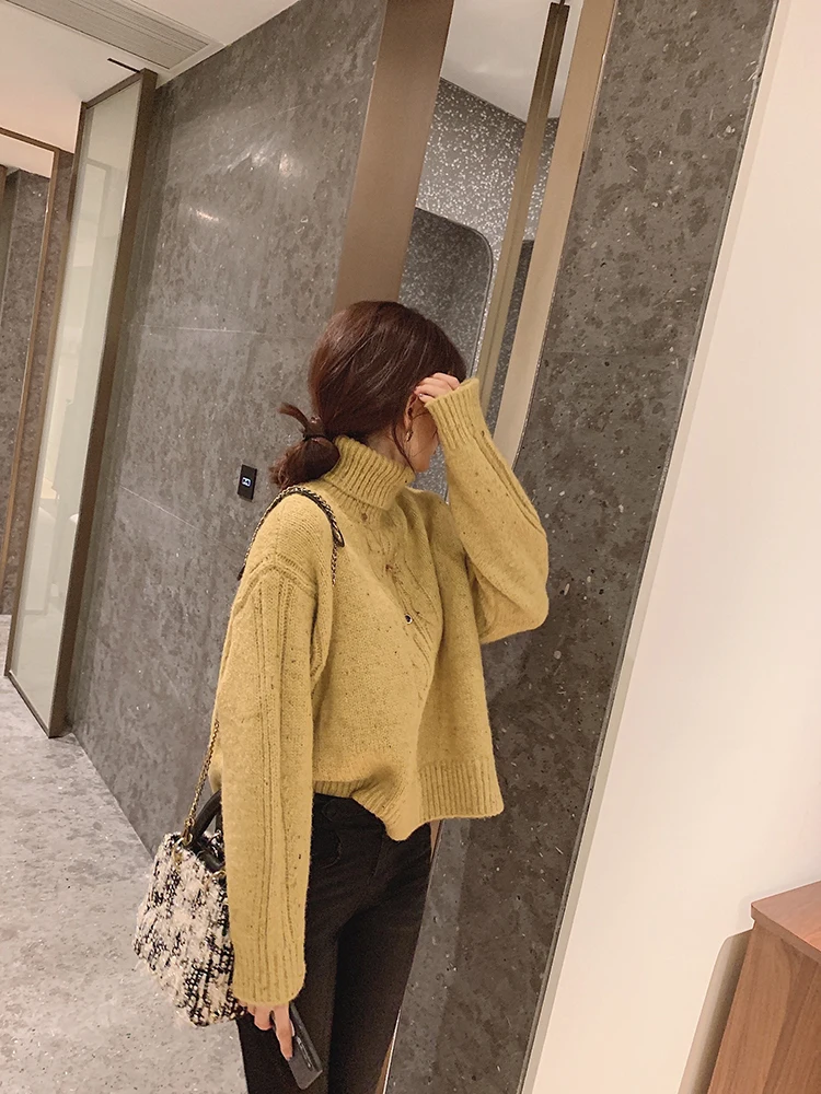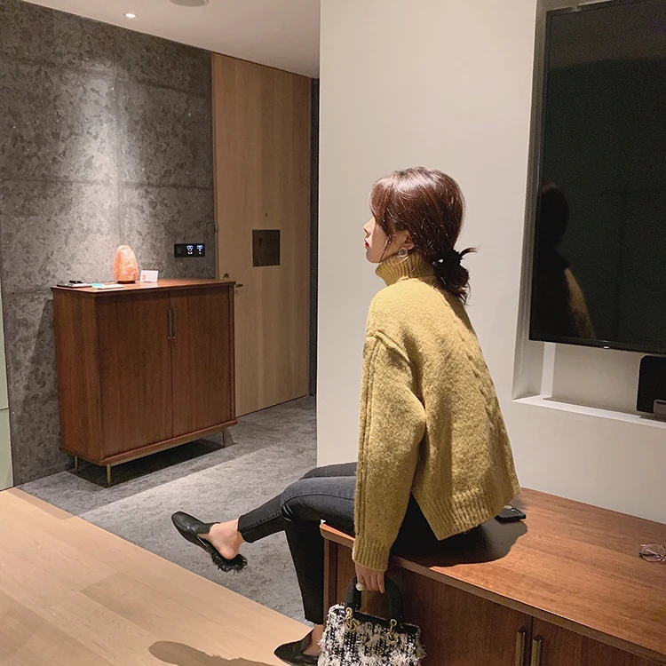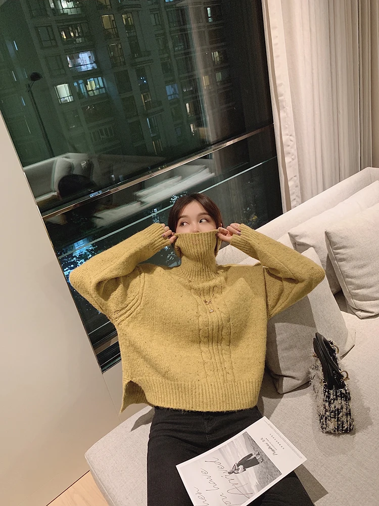 MISHOW женский толстый свитер, однотонный, Осень-зима, женская теплая водолазка, вязаный пуловер с длинным рукавом, MX19D5554