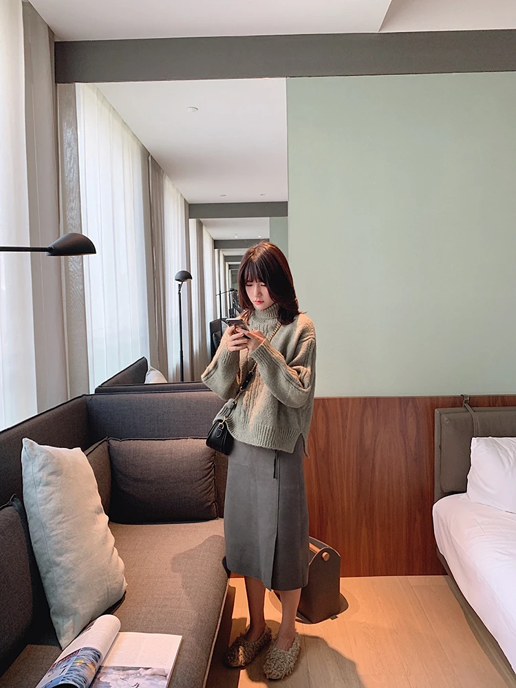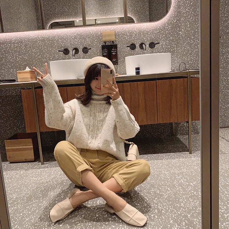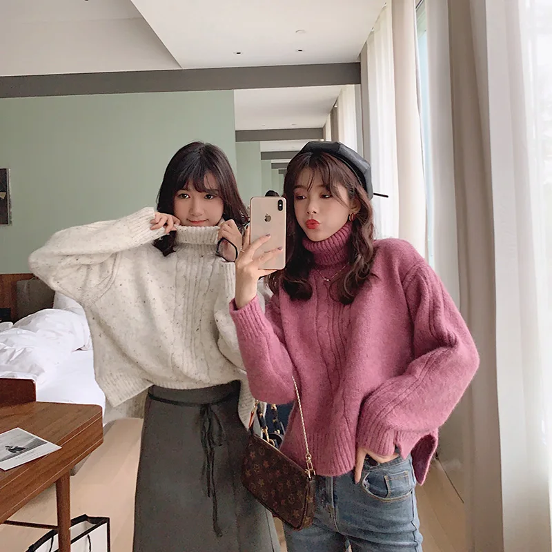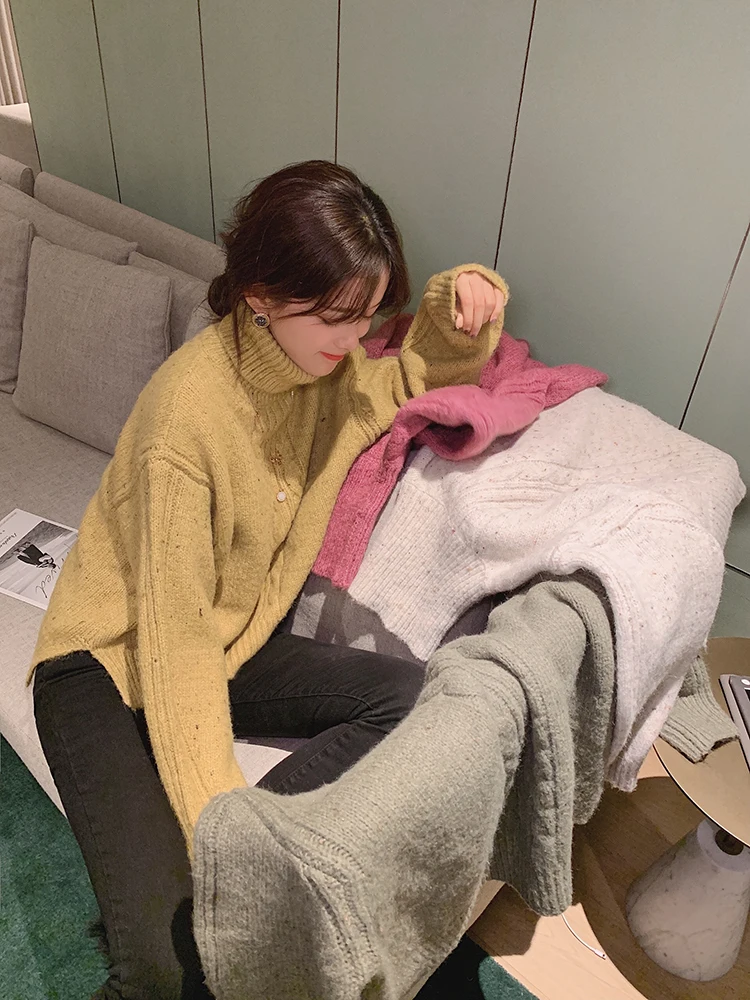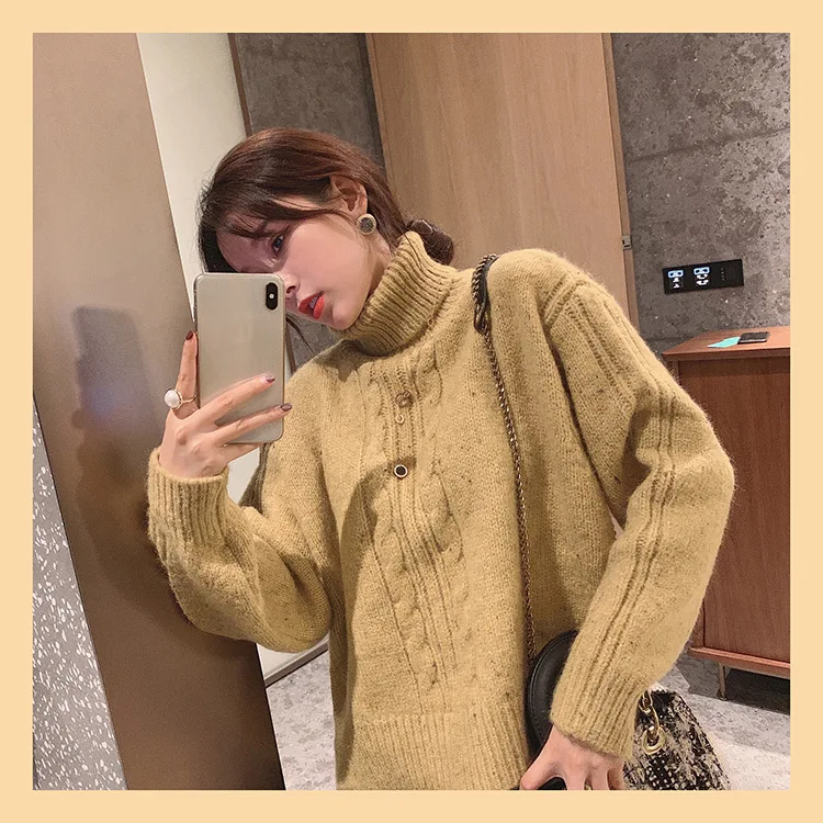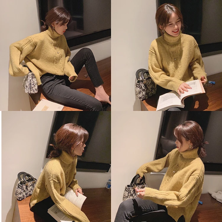 MISHOW женский толстый свитер, однотонный, Осень-зима, женская теплая водолазка, вязаный пуловер с длинным рукавом, MX19D5554