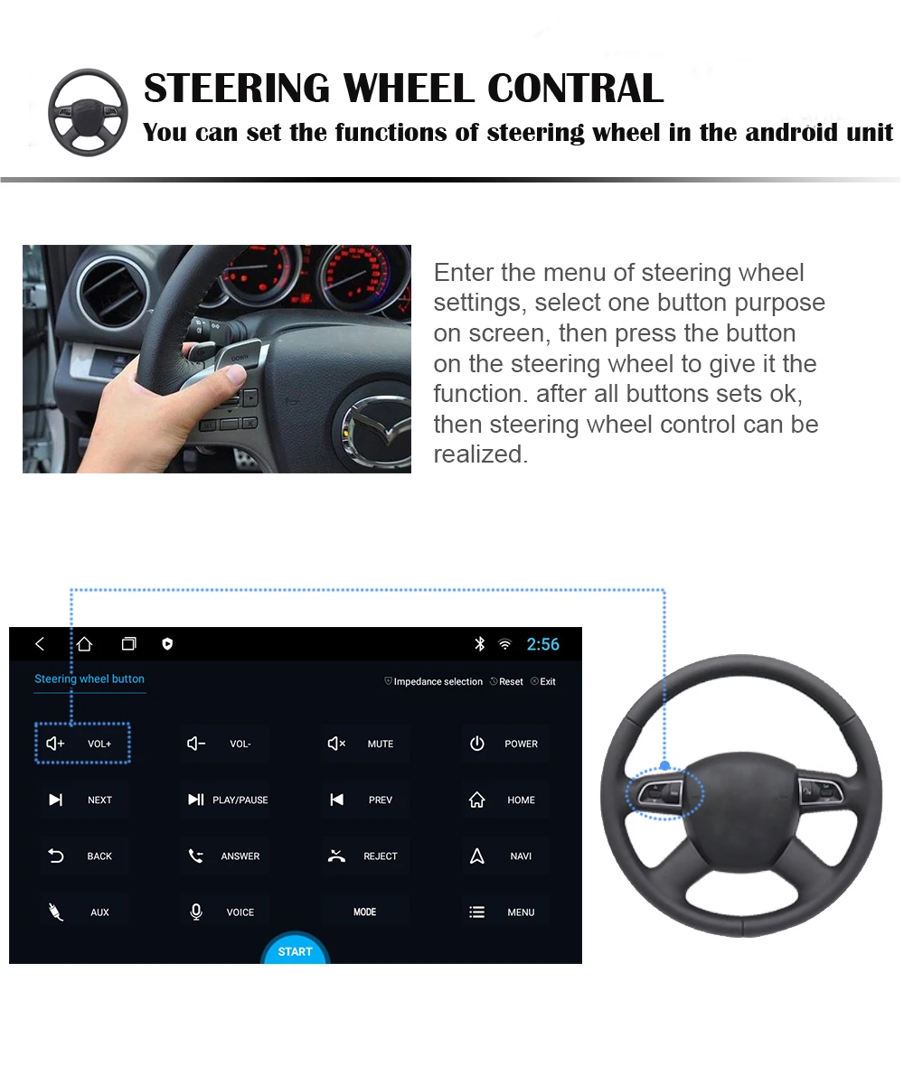 Поддержка оригинальной функции управления рулевым колесом, регулировка громкости, простота в эксплуатации и безопасное вождение