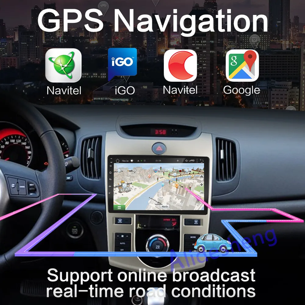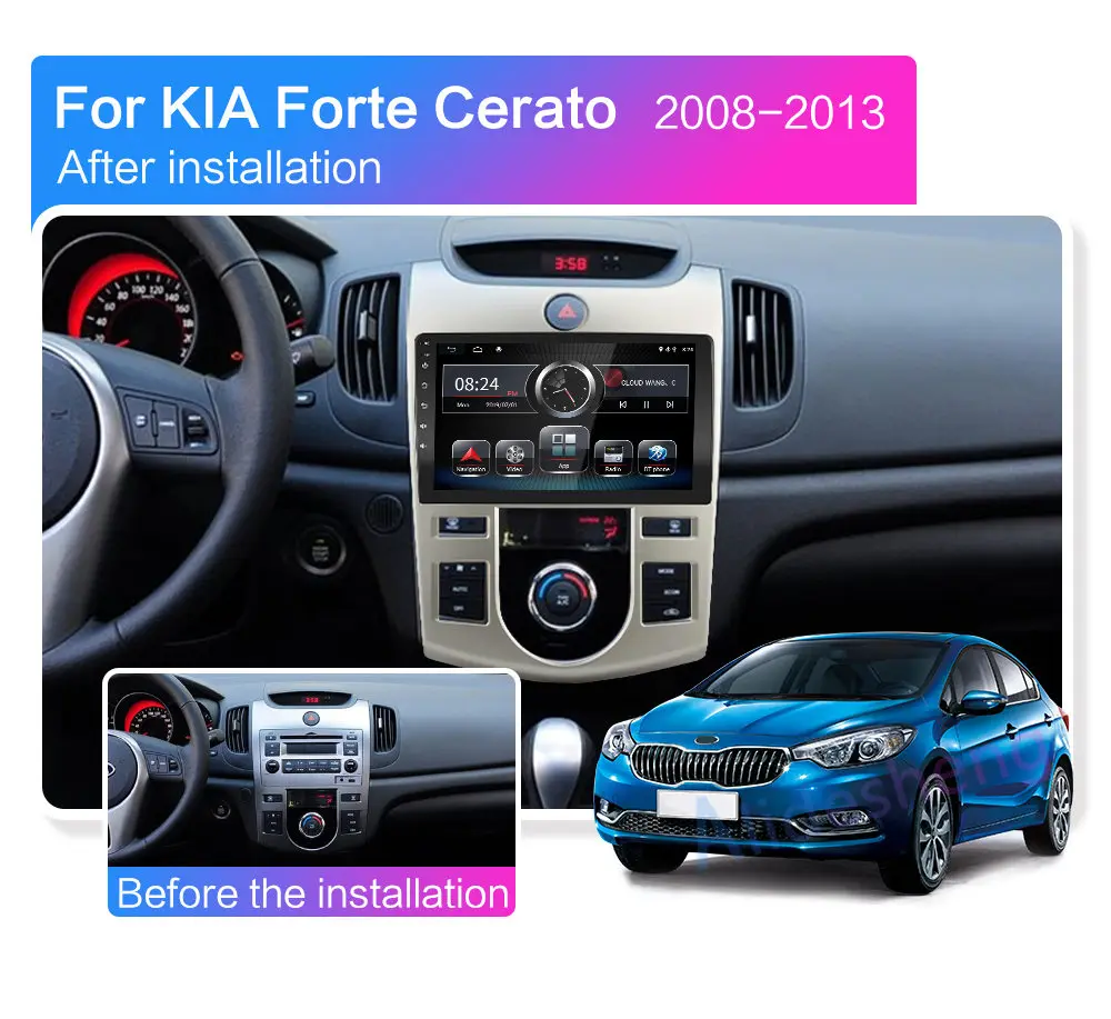 Автомобильный мультимедийный плеер для KIA Forte(AT), мультимедийный проигрыватель с радио, GPS-навигацией на Android 9,0, 2 Гб ОЗУ, для KIA Forte(AT), Cerato 2 2008, 2009, 2010, 2011, 2012, 2013