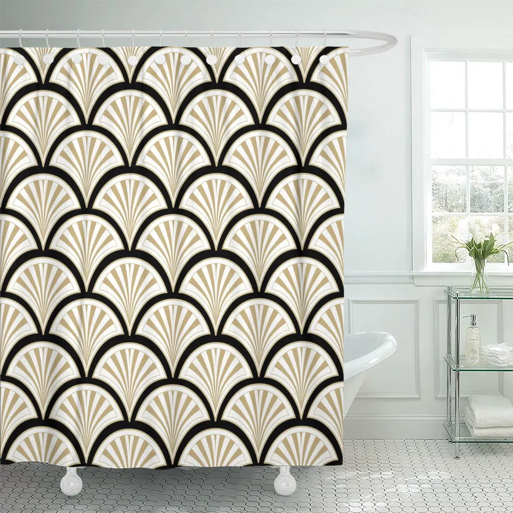 Серый абстрактный геометрический Ретро Цветочный молния черный и бежевый занавеска для душа водонепроницаемый полиэстер 72x78 дюймов комплект с крючками