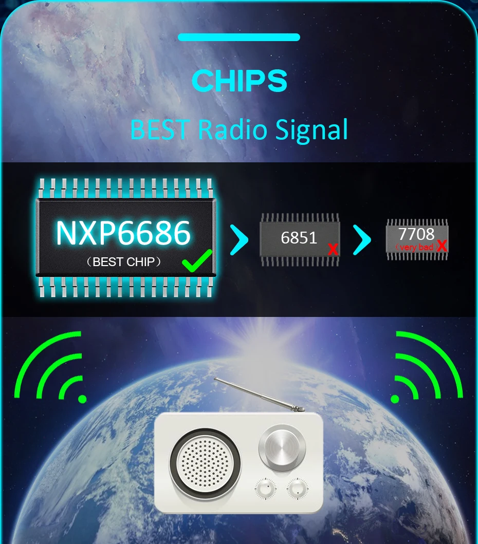 TDA7851L является лучшим амплитудным IC на рынке в настоящее время. Лучше, чем 7388, и все остальные. Это делает качество звука автомобиля лучше, чем у других типов радио. Если вам нужно лучшее качество звука, мы предлагаем вам также выбрать функцию DSP, DSP-это система цифрового усилителя, которая предлагает лучшее качество звука.