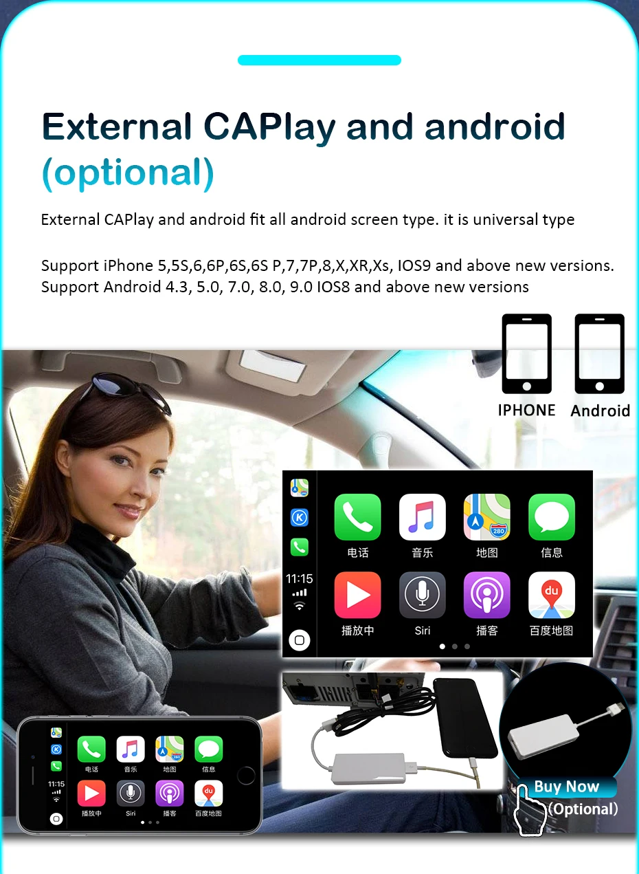 Это радио включает в себя встроенную беспроводную функцию CAPLAY и автоматическую функцию android (опционально). Когда вы подключаете свой мобильный телефон к радио через приложение ZIINK, вы можете контролировать свой мобильный телефон с помощью нашего радио-экрана. Вы можете совершать телефонные звонки, слушать мобильный телефон и проверять мобильный телефон на радиоэкране.