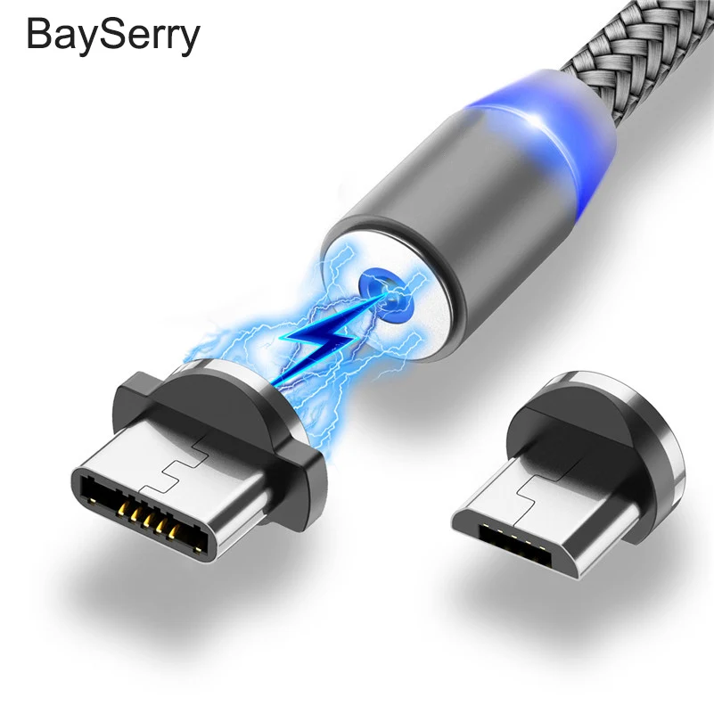 Магнитный кабель Micro USB Type-C BaySerry, кабель для быстрой зарядки USB C, магнитное зарядное устройство со светодиодной подсветкой для iPhone 12, 11, Samsung S21, Xiaomi, Huawei