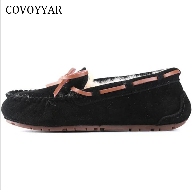 COVOYYAR2019зимняя обувь; женская зимняя теплая плюшевая повседневная обувь из натуральной кожи на плоской подошве; женские мокасины на плоской подошве; женские лоферы; WFS2036