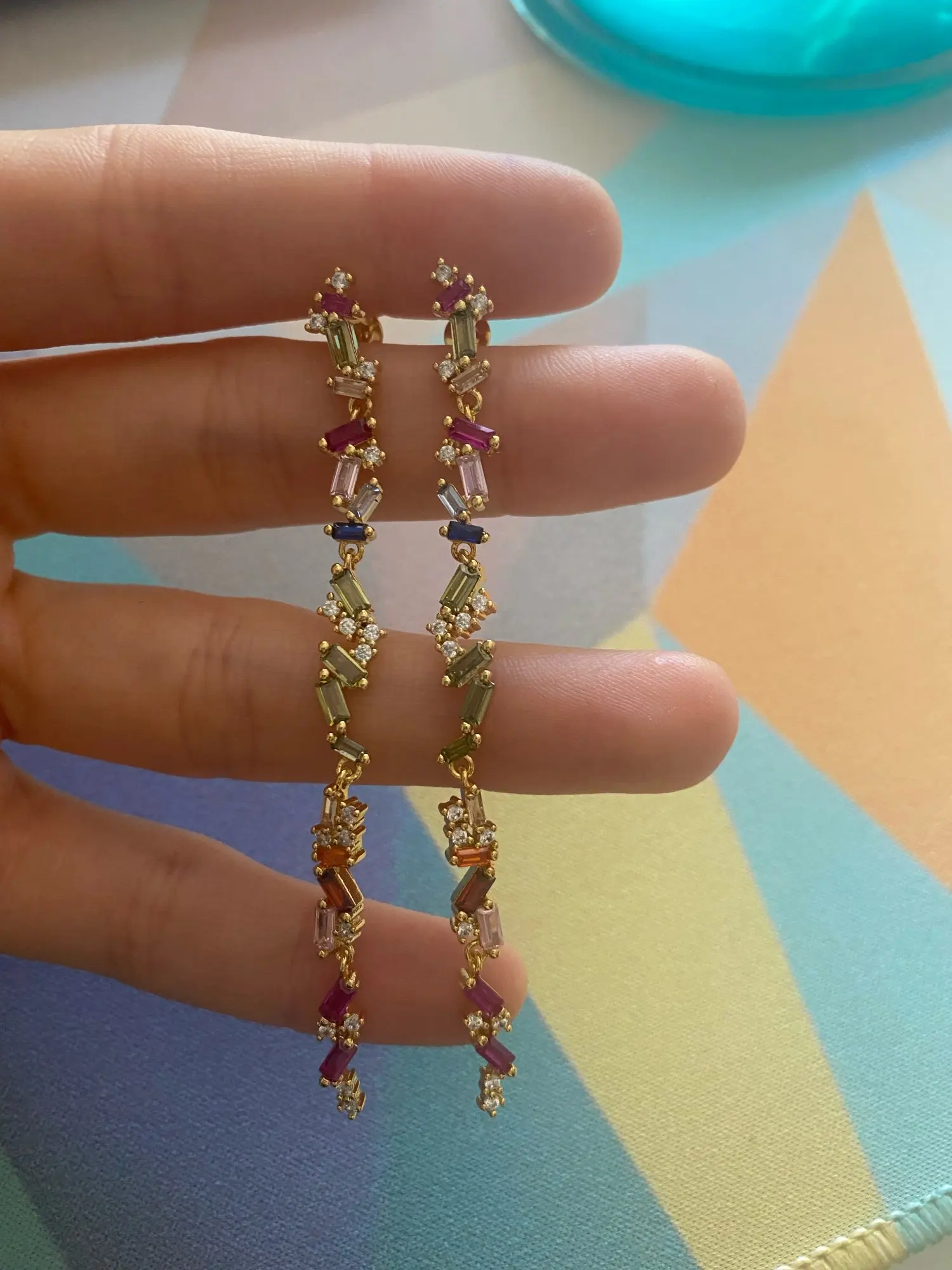 Модные ювелирные изделия характерные металлические многоцветный циркон длинные сережки Oorbellen 75 мм Серьги для женщин