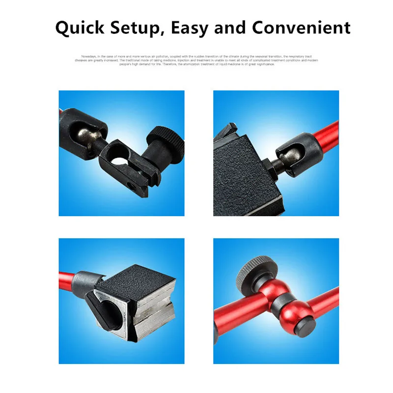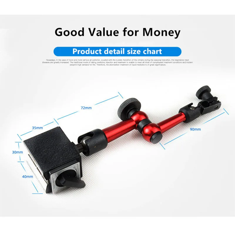 Особенности универсальной гибкой магнитной Металлической Основы: Постоянное магнитное управление с управлением открытием/выключением. Плоское основание безопасно устанавливается на цилиндрическую поверхность. Идеальные удерживающие Рычажные индикаторы в любом направлении работы по выравниванию станка. Гибкое, мощное и точное поворотное соединение позволяет регулировать любое направление и положение. Мощное магнитное основание с магнитный переключатель. Хорошая стабильность, это идеальный инструмент для полевых измерений точных заготовок. Индикатор циферблата на магнитном основании используется для, индикатор тестирования циферблата и т. д.