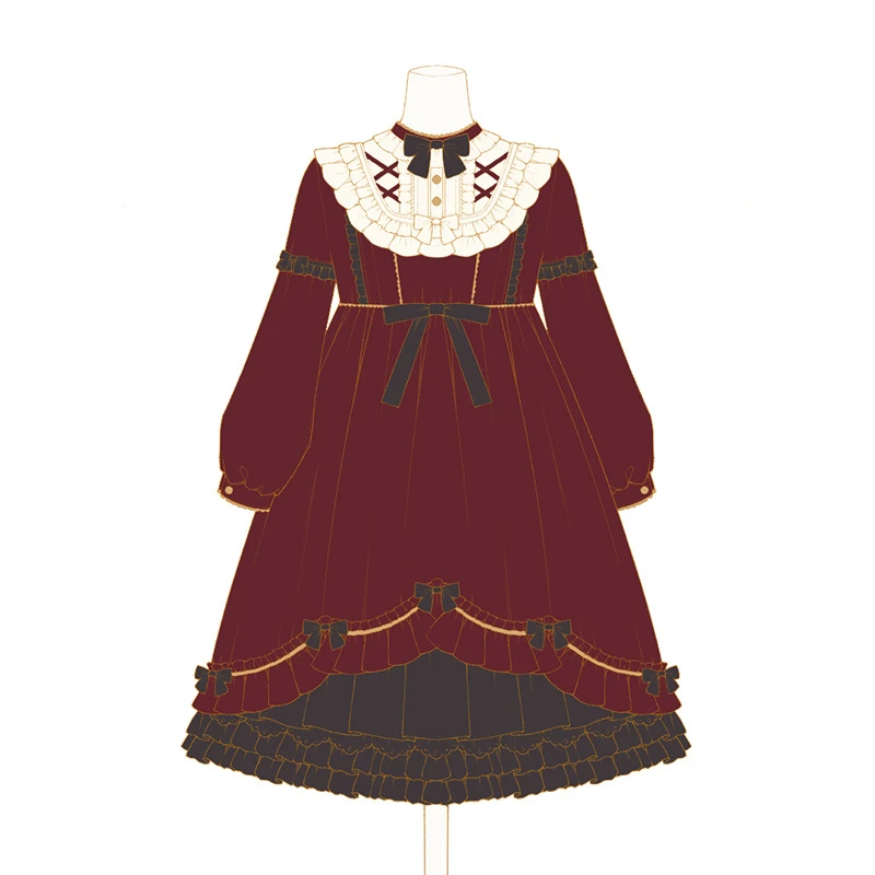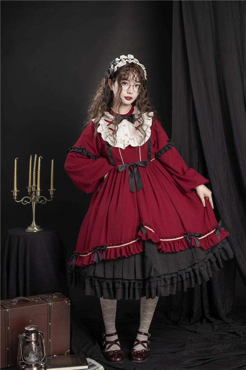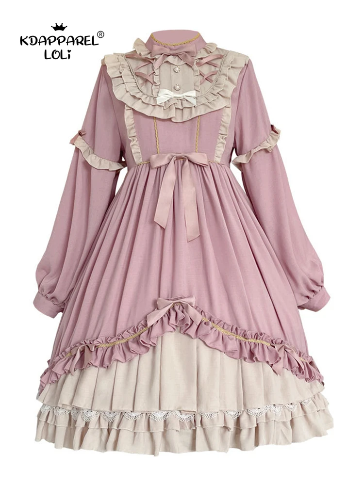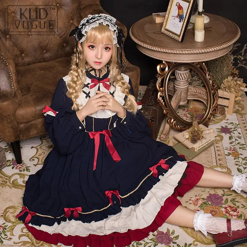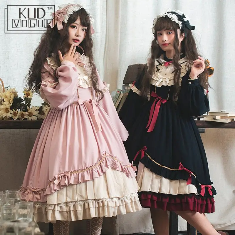 Платье в японском стиле Лолиты для девочек, готическое винтажное викторианское платье с длинными рукавами и высокой талией, с оборками, кружевное вечернее платье, костюм