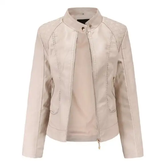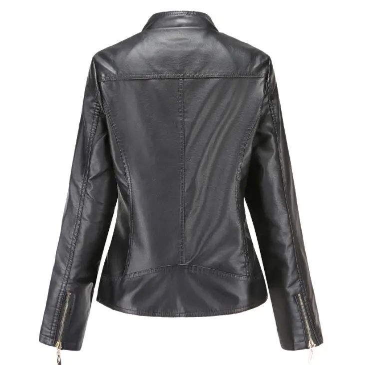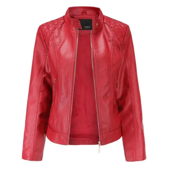 Женская кожаная куртка с воротником-стойкой, мотоциклетная куртка из искусственной кожи, верхняя одежда для осени, черного и красного цветов, 2019