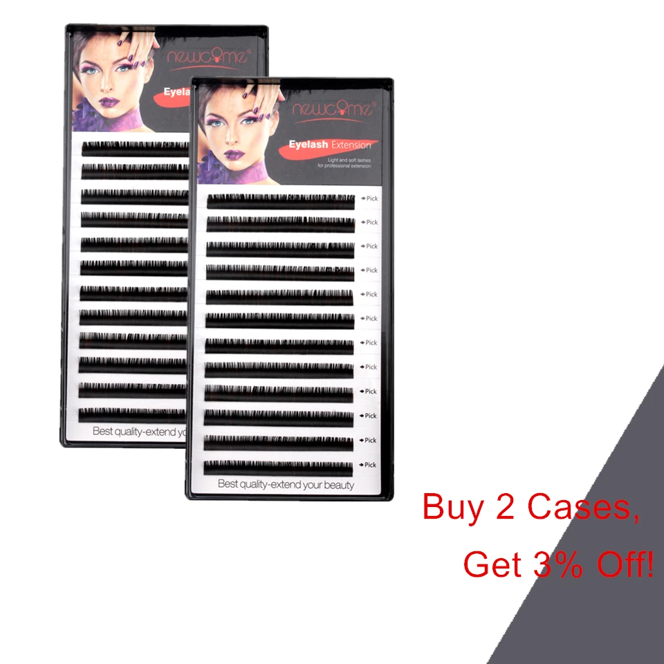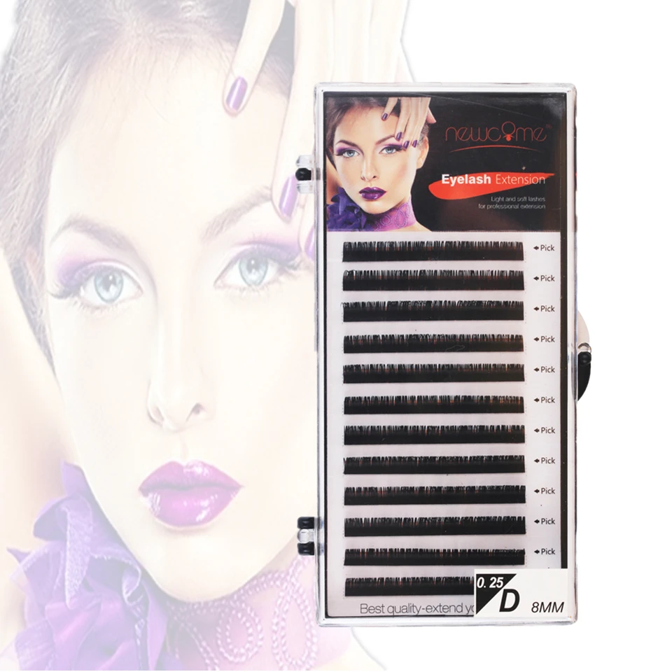 NEWCOME всех размеров отдельные ресницы натуральные ресницы для наращивания, B, C, D, искусственный накладные ресницы 0,05-0,25 мм