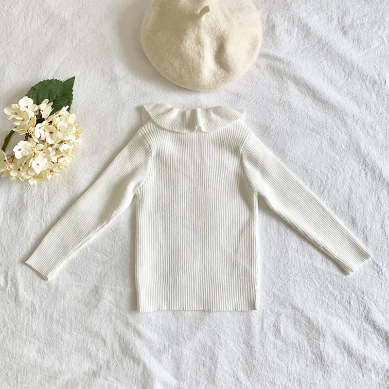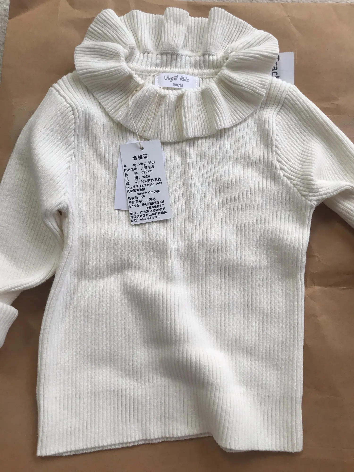 Модный свитер для маленьких девочек 2019, вязаный пуловер с рюшами и воротником принцессы для девочек, детский базовый свитер BC808