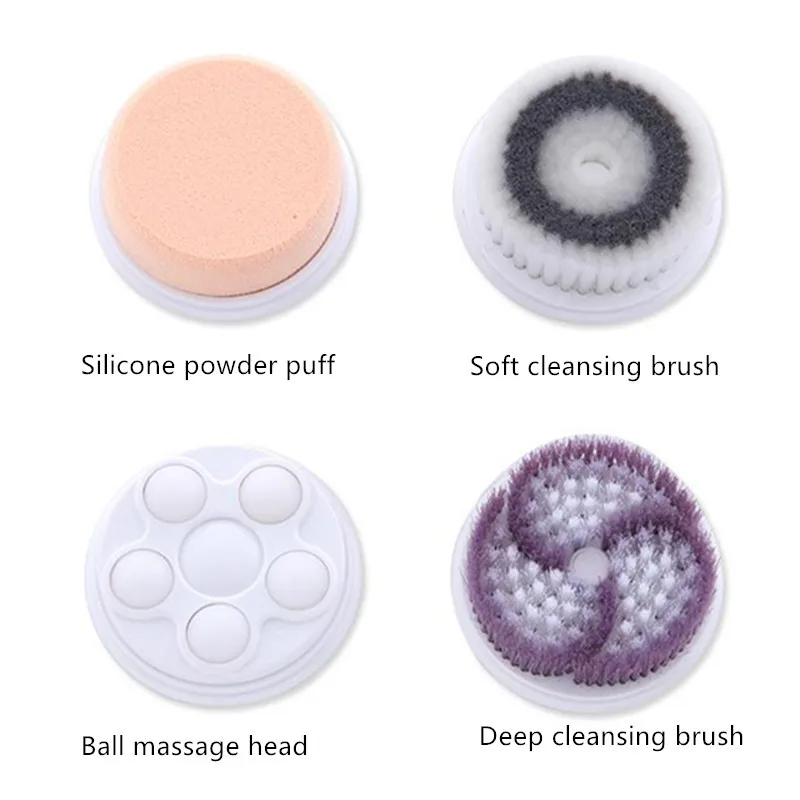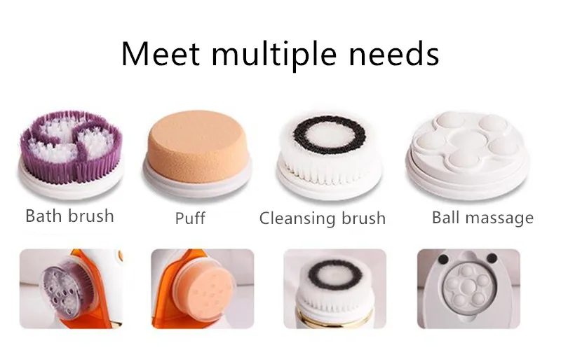 3. Основная система нашей машины работает с 3D звуковым движением для более глубокого очищения и лучшего продвижения выработки коллагена. С 1 губчатой подушечкой для простой очистки поверхности макияжа и загрязнений; 2 ультратонких мягких щетки для лица для замены и комплексного отшелушивания, удаления масла и омертвевшей кожи; 1 массажная катящаяся головка acupoint для похудения лица, уменьшение отечности и морщин.