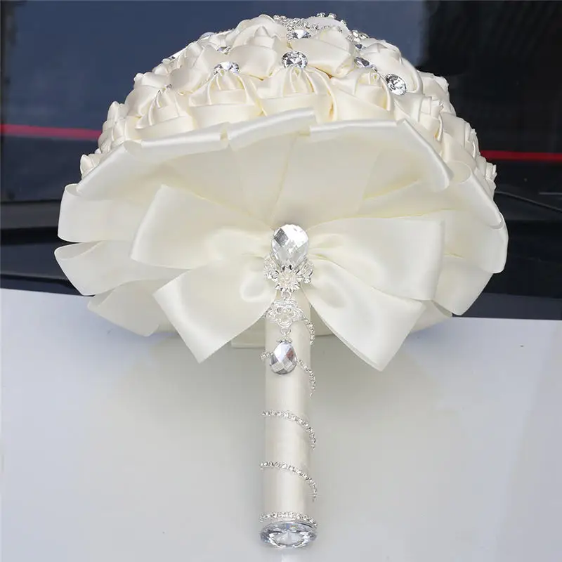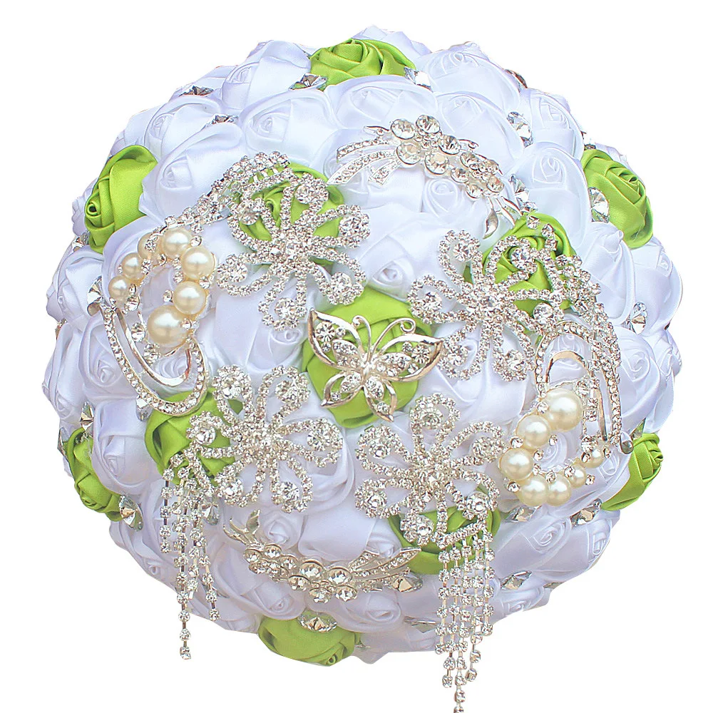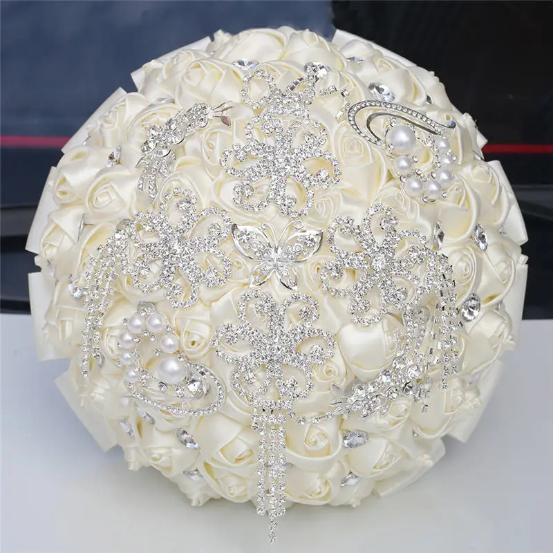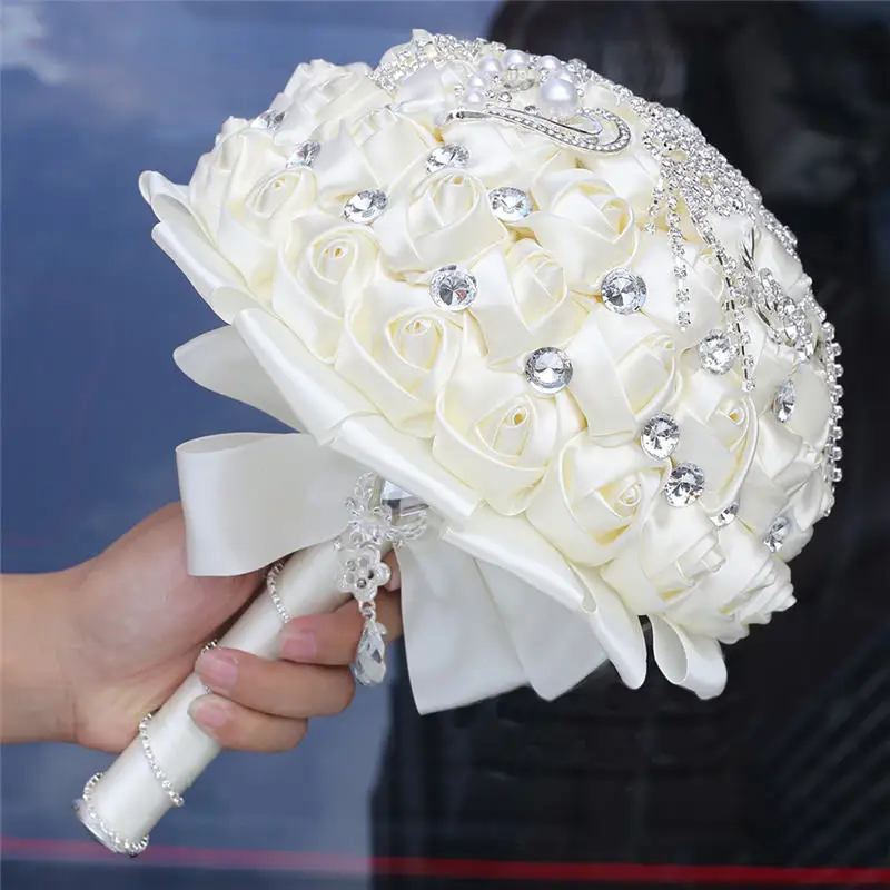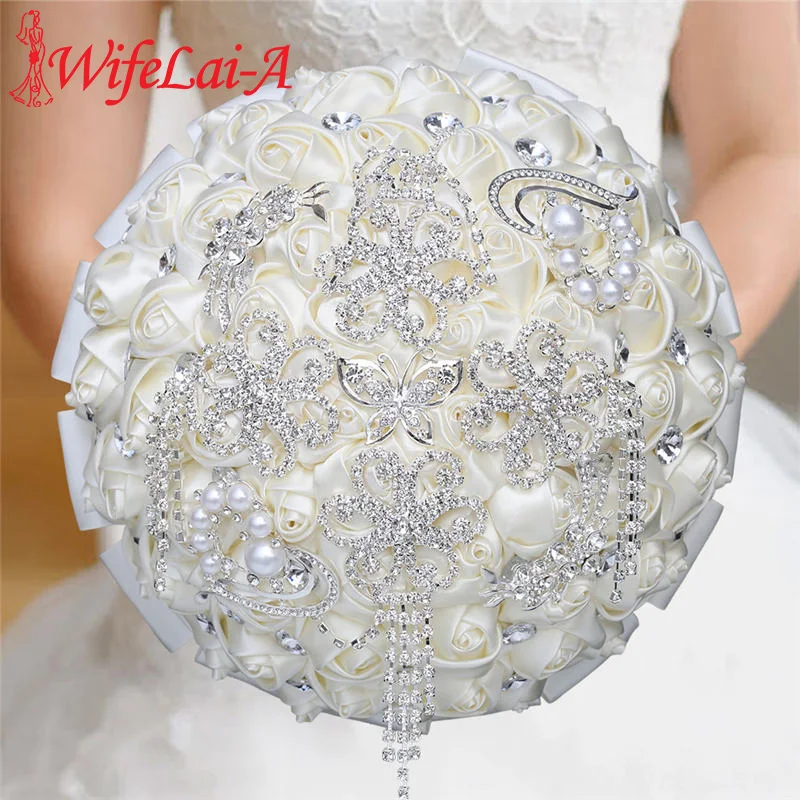 WifeLai-A стразы, держащие цветы, свадебные цветы, свадебные букеты, лента слоновой кости, брошь, букет, свадебный букет с бриллиантами W2285