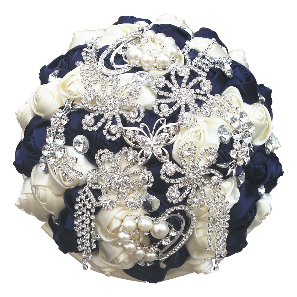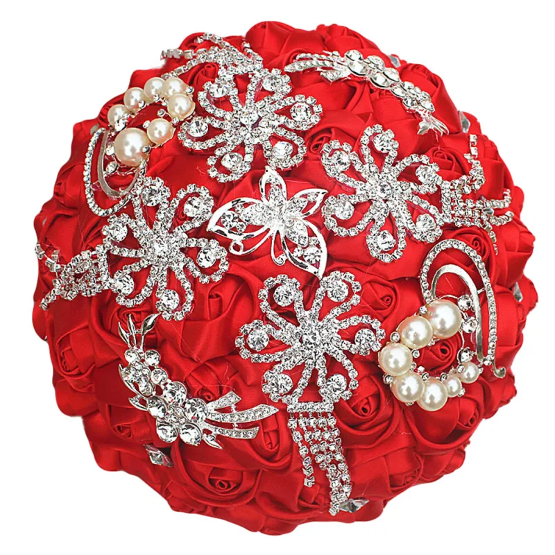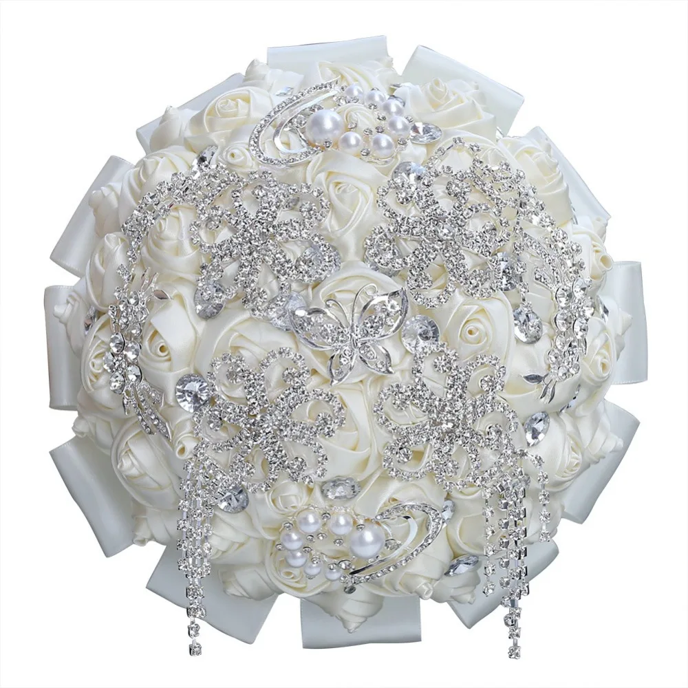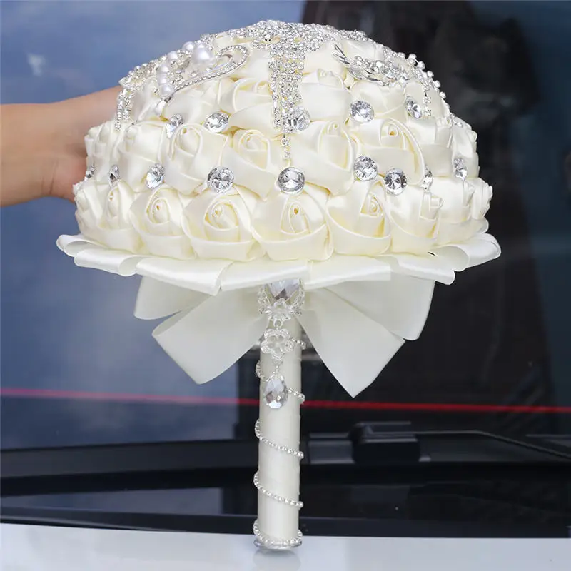 WifeLai-A стразы, держащие цветы, свадебные цветы, свадебные букеты, лента слоновой кости, брошь, букет, свадебный букет с бриллиантами W2285