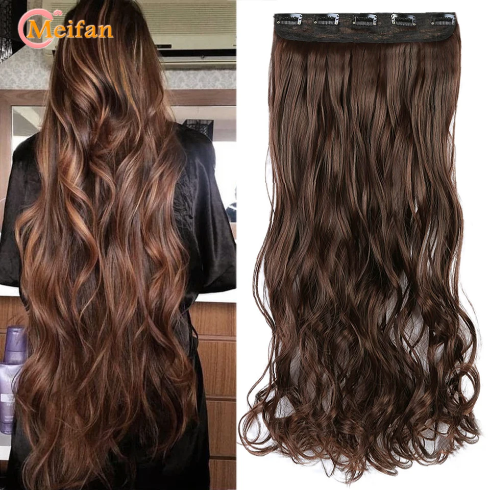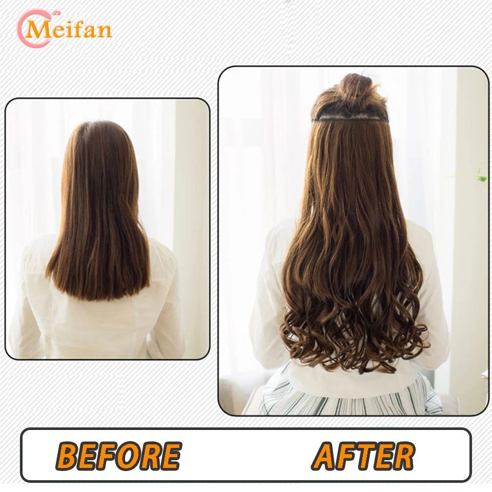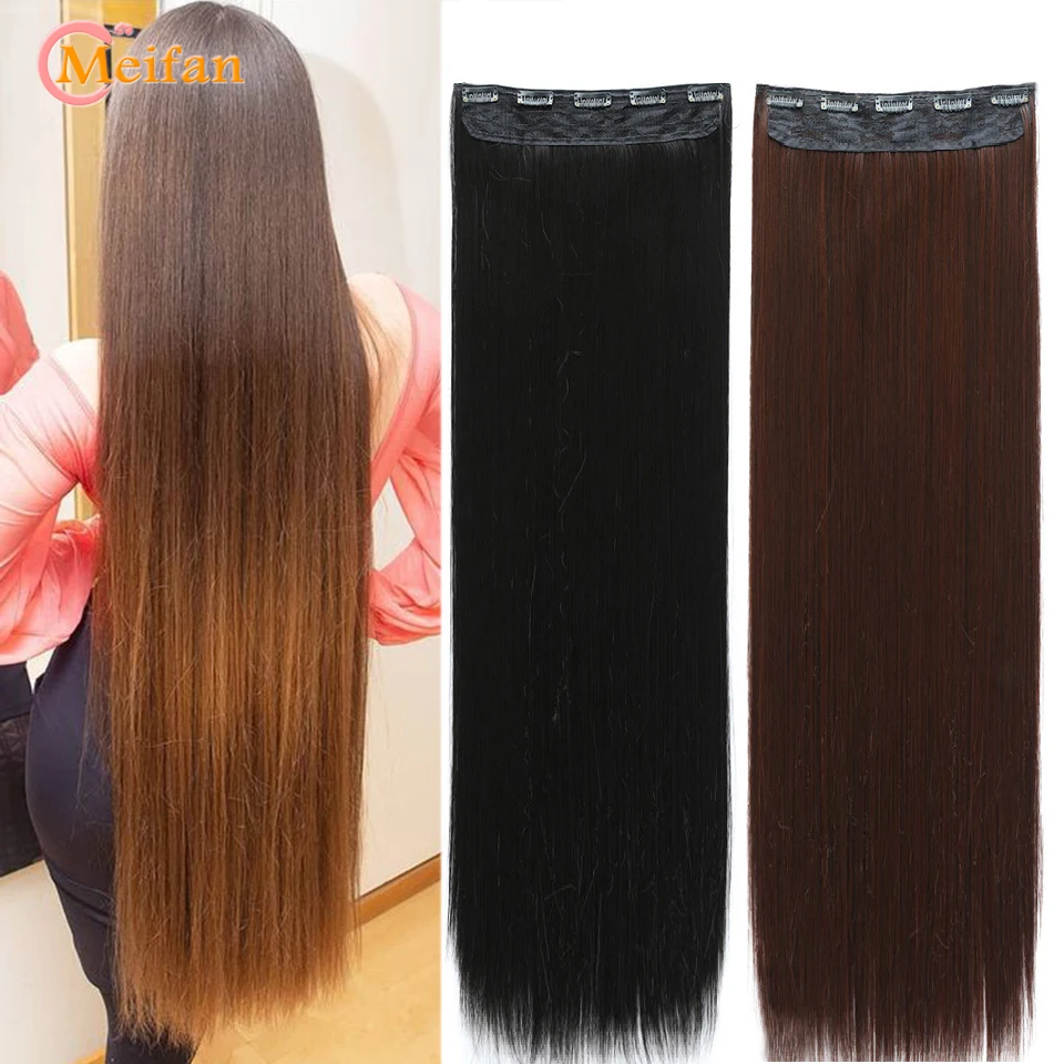MEIFAN Синтетические длинные прямыекудрявые клипсы в одном кусочке синтетические накладные волосы для женщин 5 клипс натуральные накладные волосы