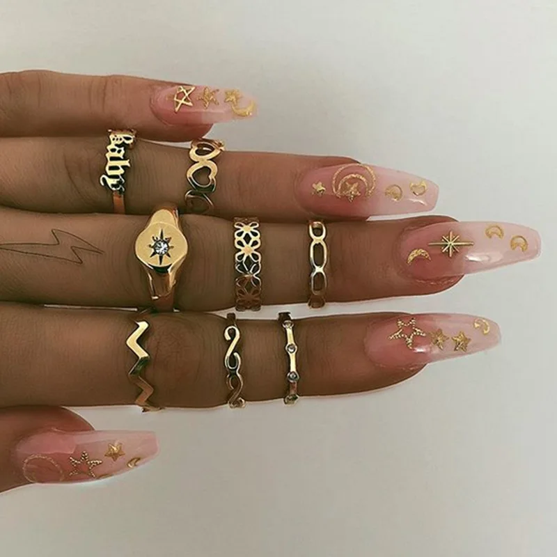 Tocona, винтажное Золотое кольцо, набор для женщин, девушек, бохо, ...