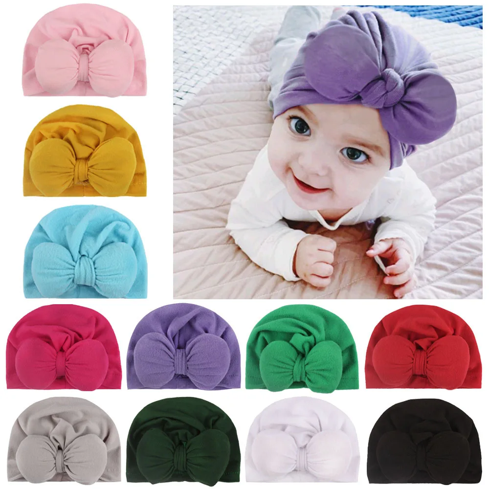 Шапочка с бантом для новорожденных девочек, 1 шт., тюрбан Младенческая шапочка