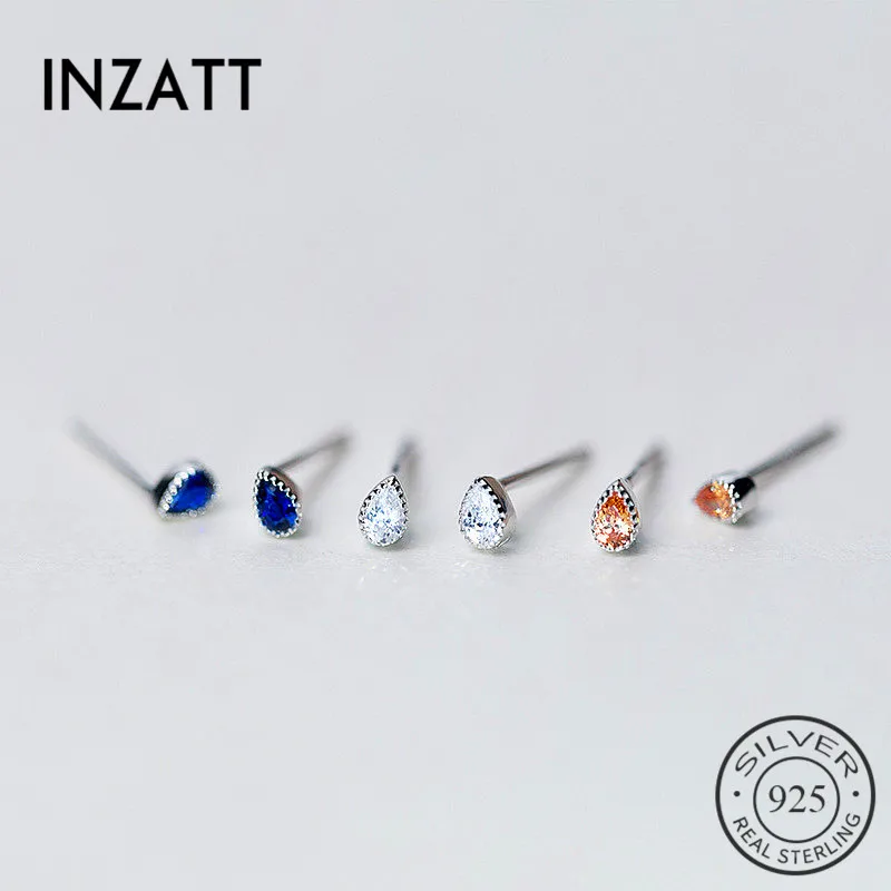 Женские циркониевые серьги-гвоздики INZATT, минималистичные вечерние серьги из настоящего серебра 925 пробы, Изящные Ювелирные изделия, подарочные аксессуары