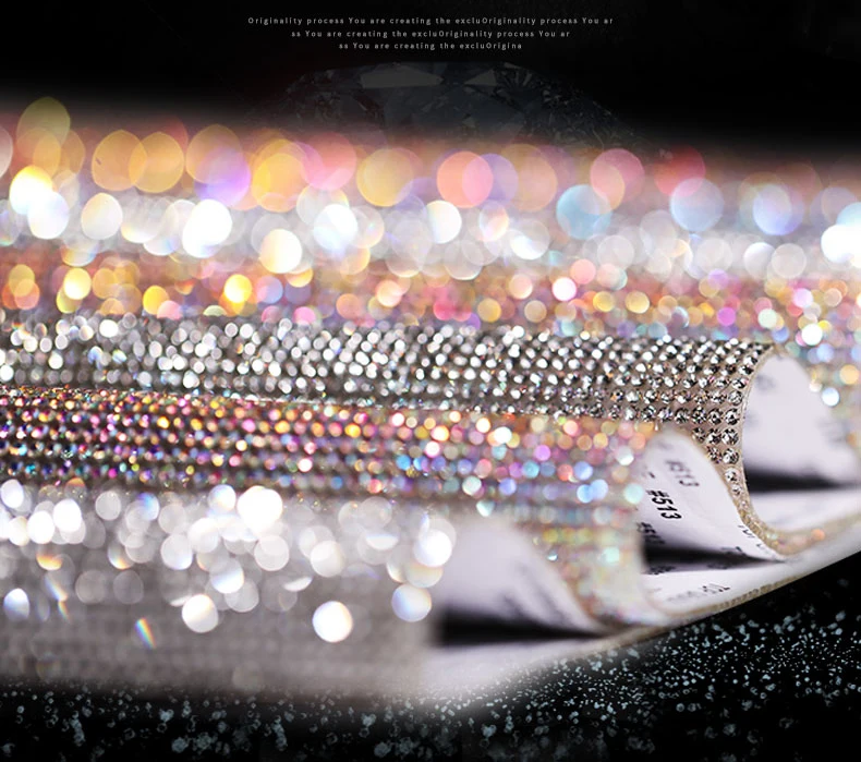Стеклянная отделка горного хрусталя наклейки с кристаллами, сетчатая лента, Аппликация из бисера в рулоне для платья, одежды, украшения для автомобиля