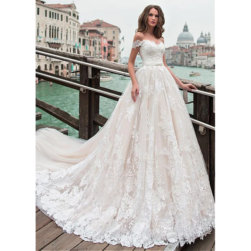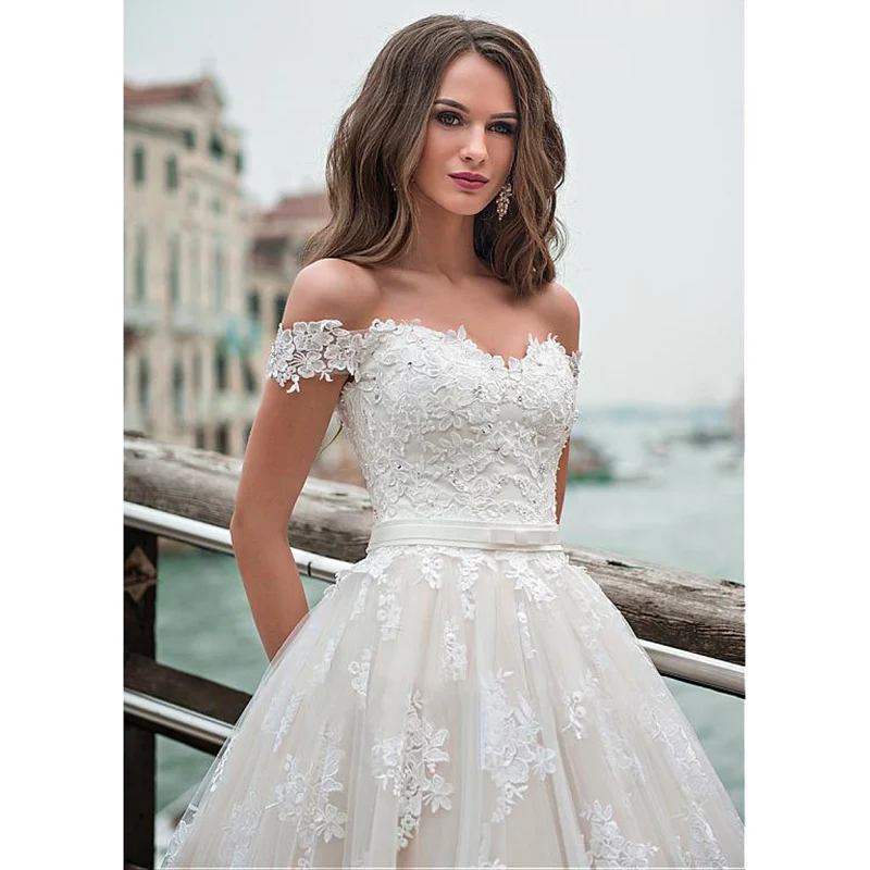 Фантастические тюлевые трапециевидные Свадебные платья с открытыми плечами женское свадебное платье со шнуровкой сзади